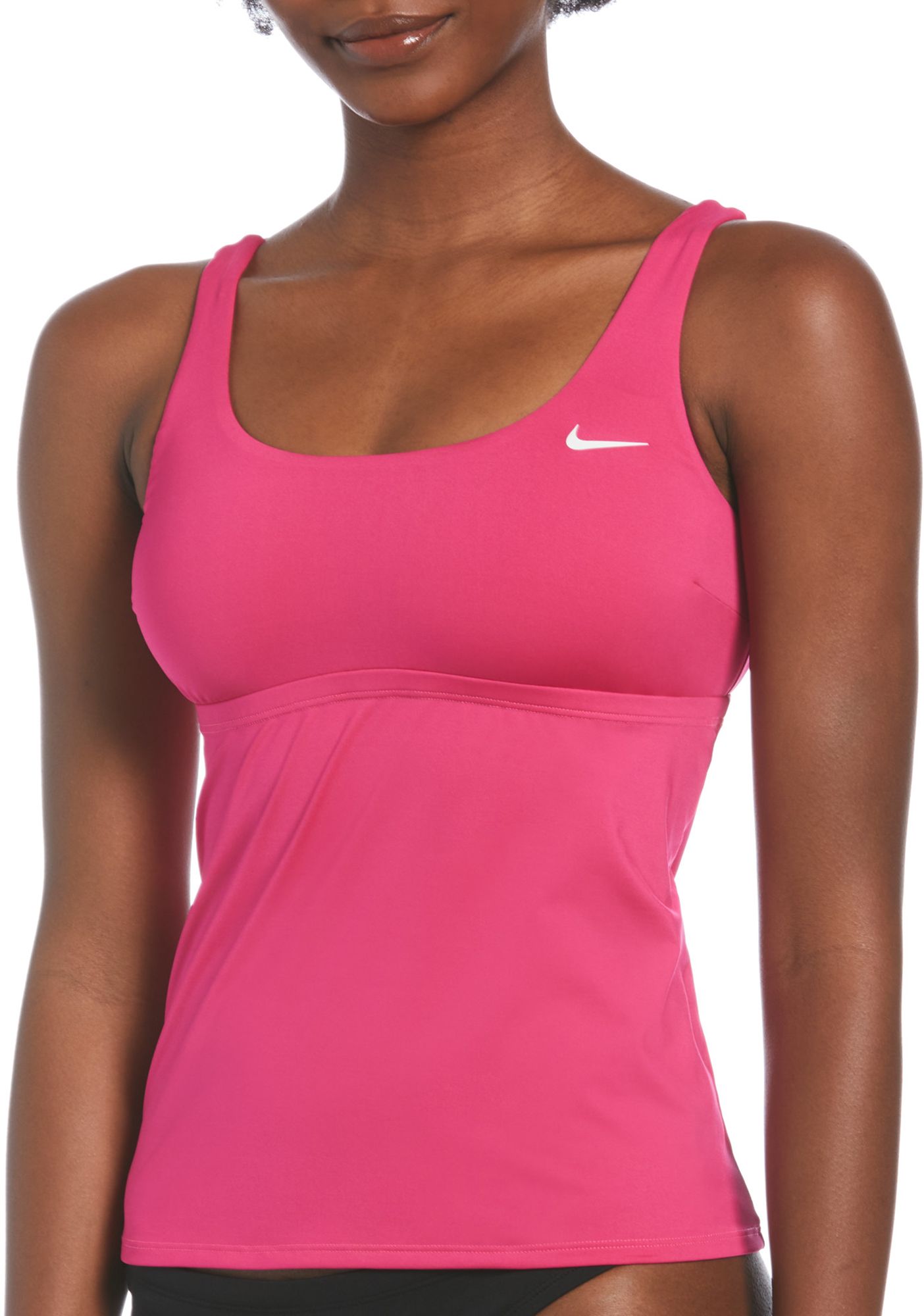 Make a splash this season wearing the Nike® Essential Scoop Neck Tankini Top. Its designed to perform as you comfortably cut through the water with its removable cups and adjustable shoulder straps.