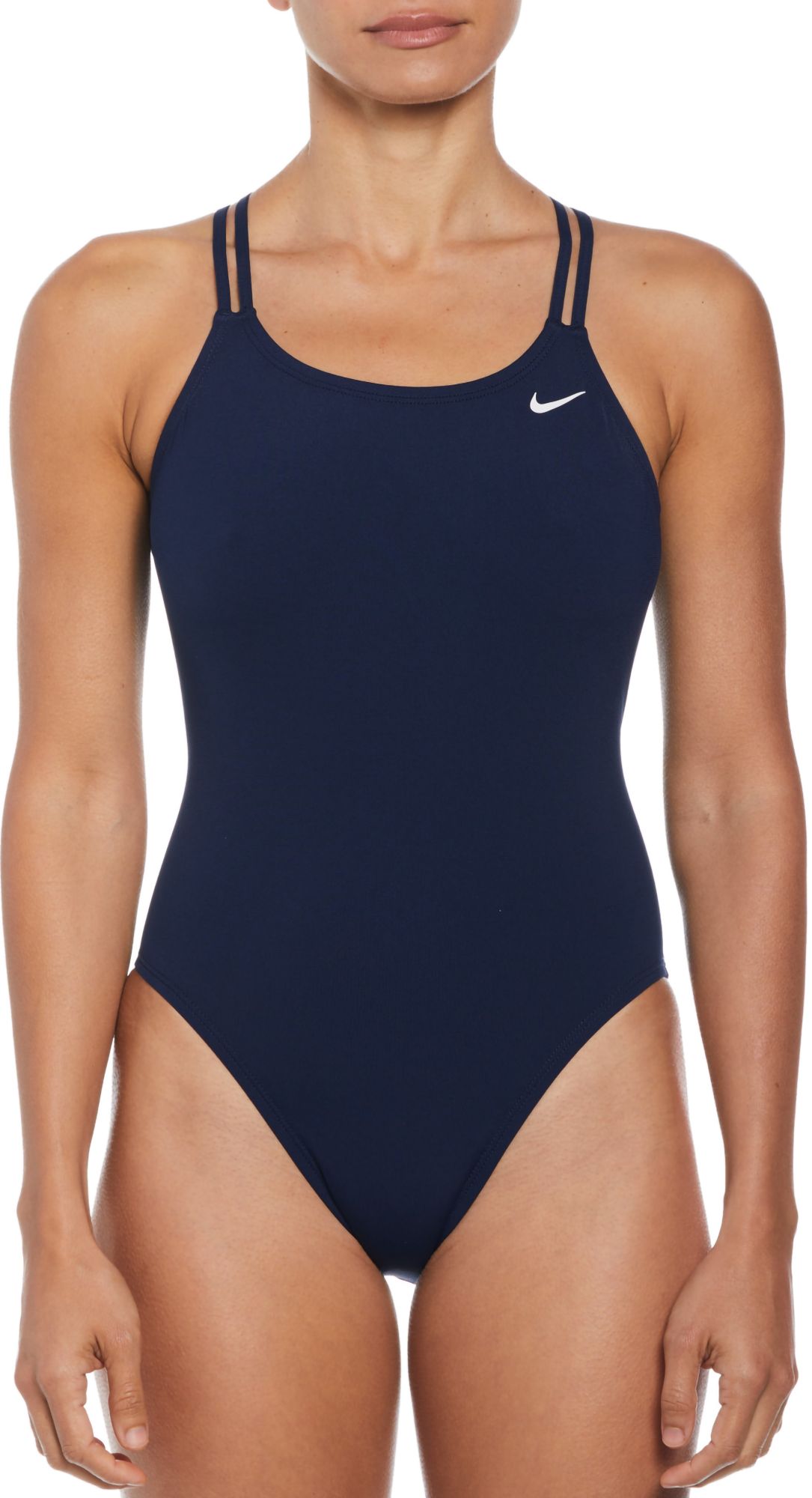 The Women's Nike Swim HydraStrong Solid Spiderback One Piece provides light support with comfortable spiderback straps that are ideal for your low-impact water activities. Cheeky bottom coverage delivers a flattering minimalist look while allowing for a full range of leg movement. This sleek one-piece swimsuit is crafted with flat seams to increase comfort against the skin and comes fully lined for an improved fit and feel. Nike HydraStrong fabric offers long-lasting durability, designed to last swim after swim.