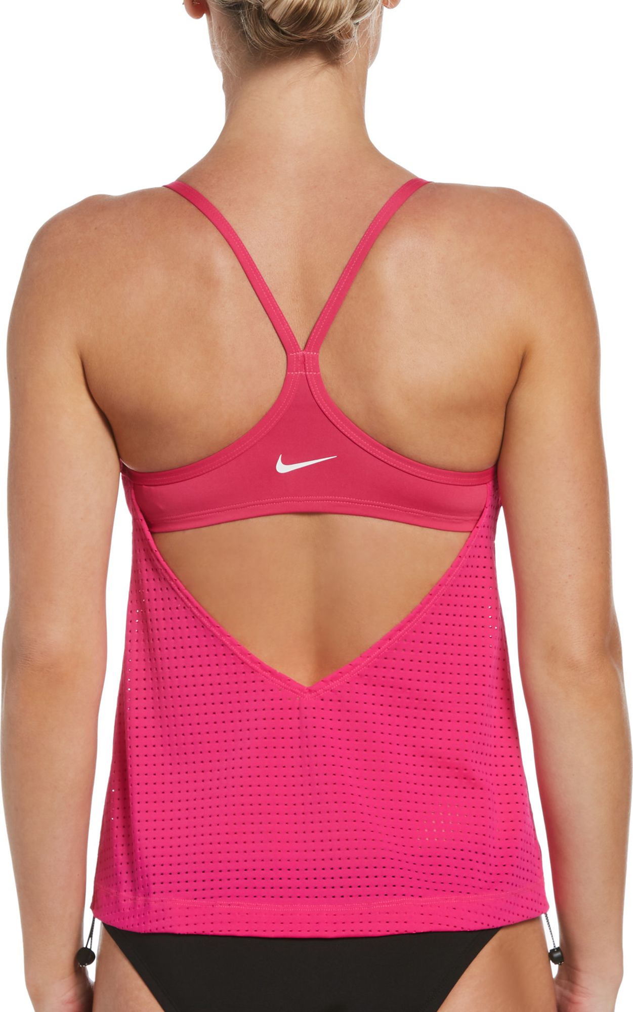 I have many tankini tops with tie strings and bra straps and underwires, etc. They are all difficult to get in and out of. I love this tankini because it is easy— it’s just like putting on a sports bra.
