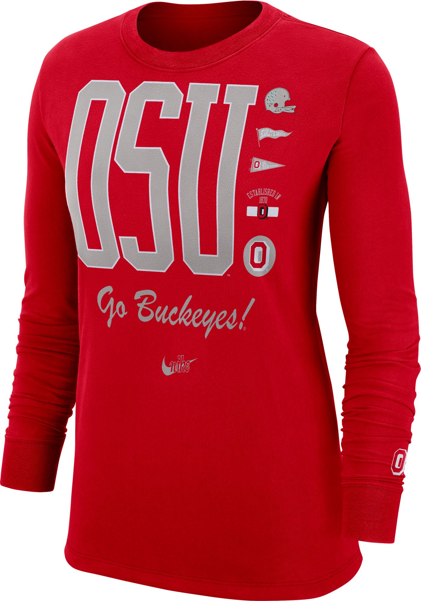 Nike Women's Ohio State Buckeyes Scarlet Cuff Football Long Sleeve T-Shirt