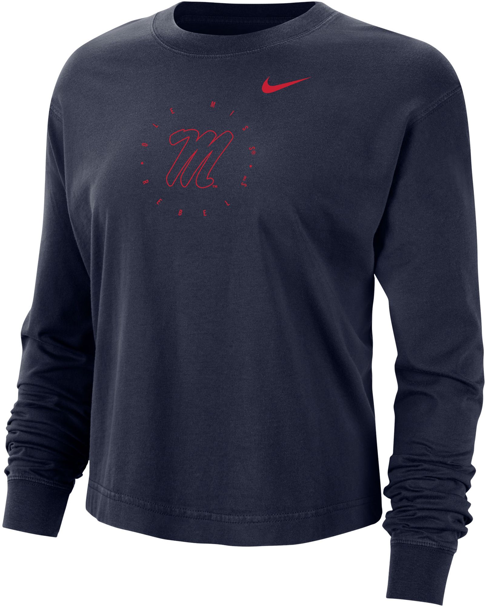 Nike Women's Ole Miss Rebels Blue Boxy Cropped Long Sleeve T-Shirt