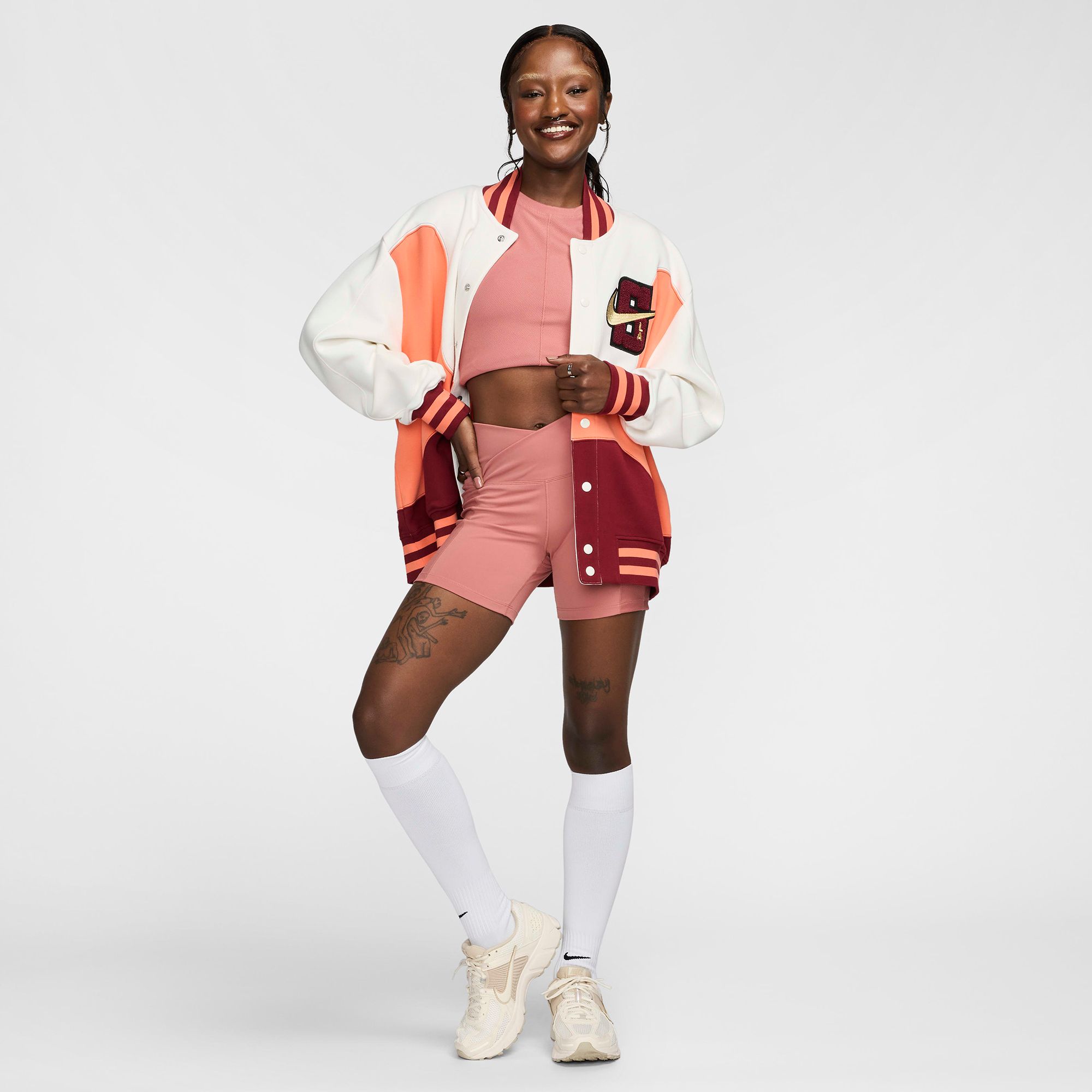 Up for a workout or down to chill, these biker shorts are the Ones that are ready for whatever you are. Their midweight, peachy-soft fabric stretches with your every move and dries quickly. A wrapped waistband that crosses in the front works with ribbed side panels to add extra dimension to your look.