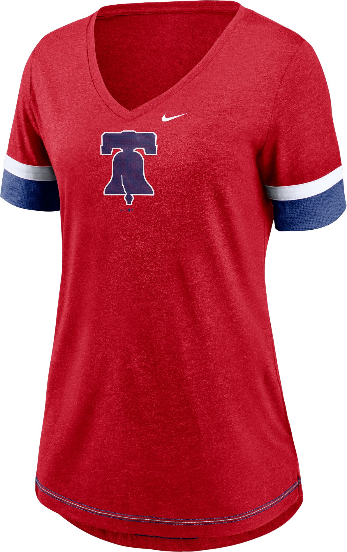Take your everyday Phillies t-shirt to a new level in the Nike® Women’s Philadelphia Phillies Mesh Logo V-Neck T-Shirt.