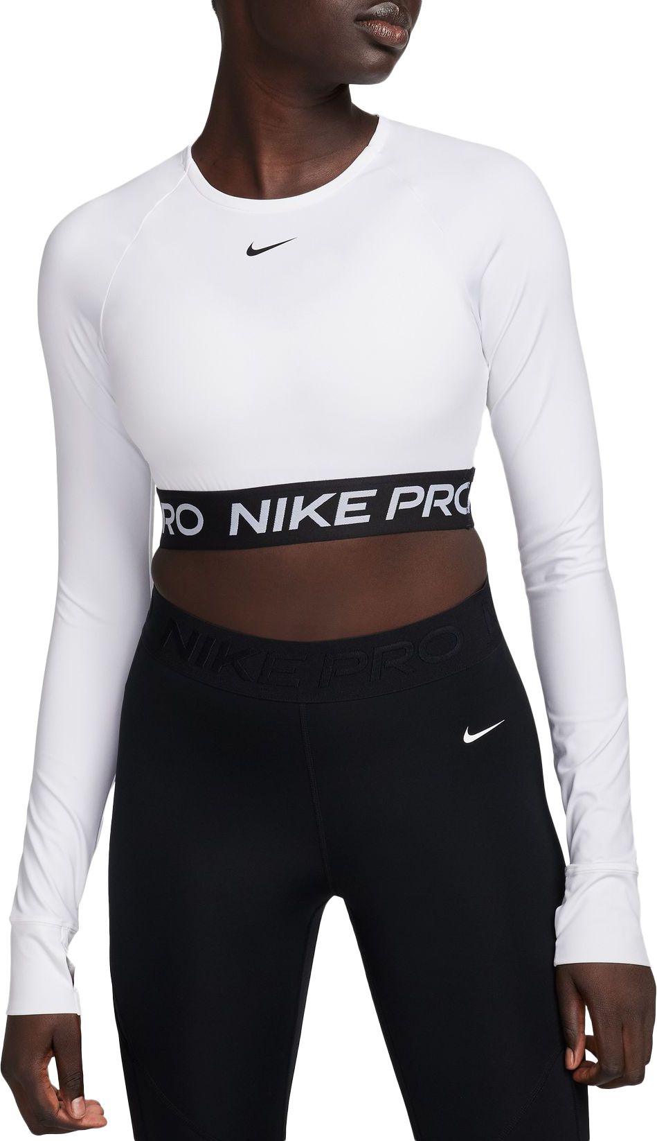 Get your sweat on in this cropped Nike Pro top. Lightweight and stretchy, the smooth fabric dries quickly to help you stay ready when your workout heats up. With a body-hugging fit and soft jacquard elastic band at the hem, you can feel secure as you crush your goals.