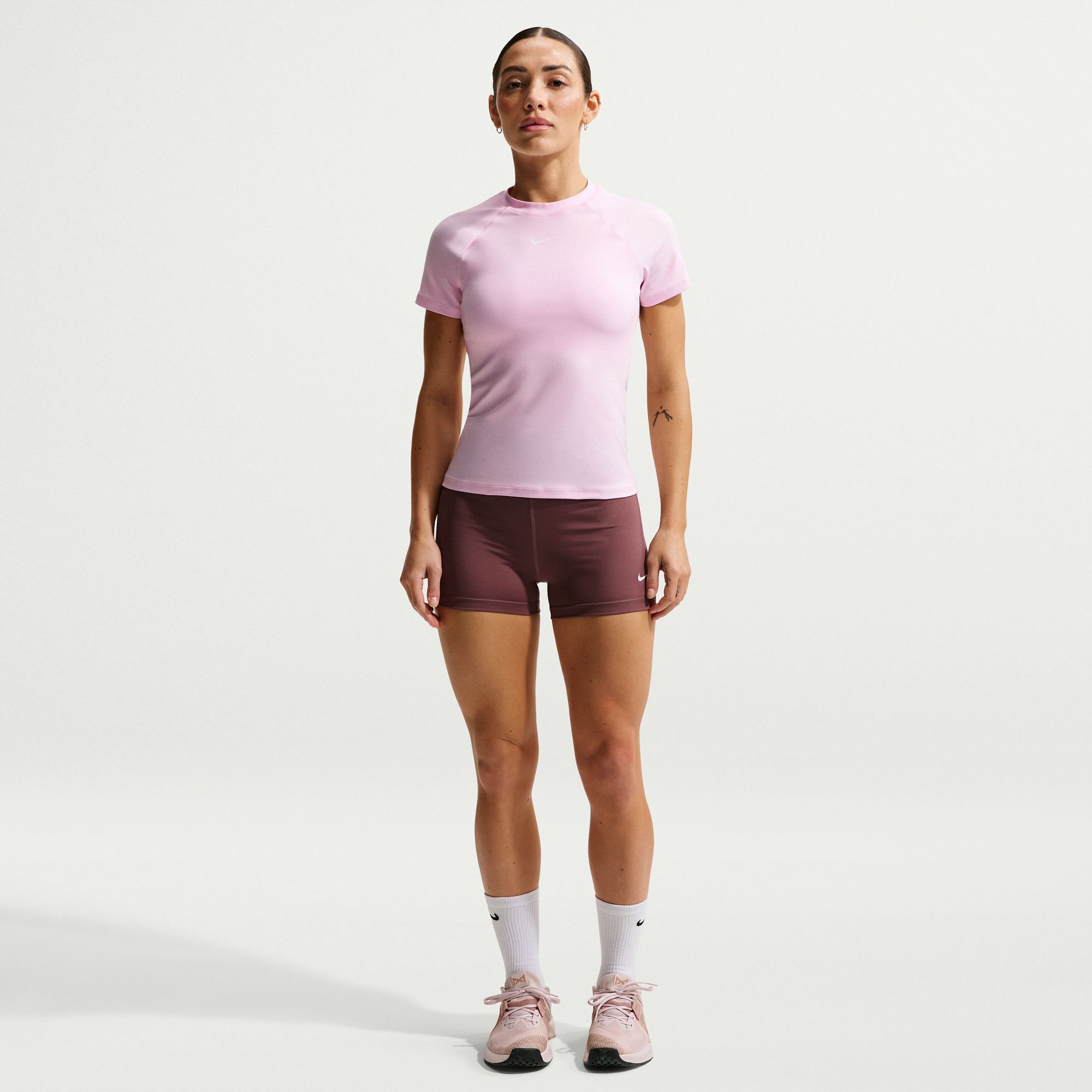 Ready to turn up the heat on your workout? Reach for this fitted short-sleeve top. Lightweight and stretchy, the smooth fabric dries quickly and works with you through every move. Mesh panels under the arms let moisture escape so that finishing strong is no sweat.