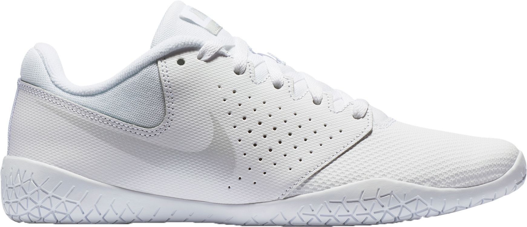 Be ready for game day when you step out in the Nike® Women’s Sideline IV Cheerleading Shoes. The mesh upper features a forefoot skin overlay for maximized durability while synthetic leather at the midfoot and heel provides a conforming fit so feet stay in place whether you’re stunting or tumbling. The drop-in midsole adds underfoot cushioning and flexibility while the outsole is designed specifically to optimize grip in stunting. Complete with perforations on the medial and lateral sides of the midfoot for breathability that ensures feet stay cool and dry.