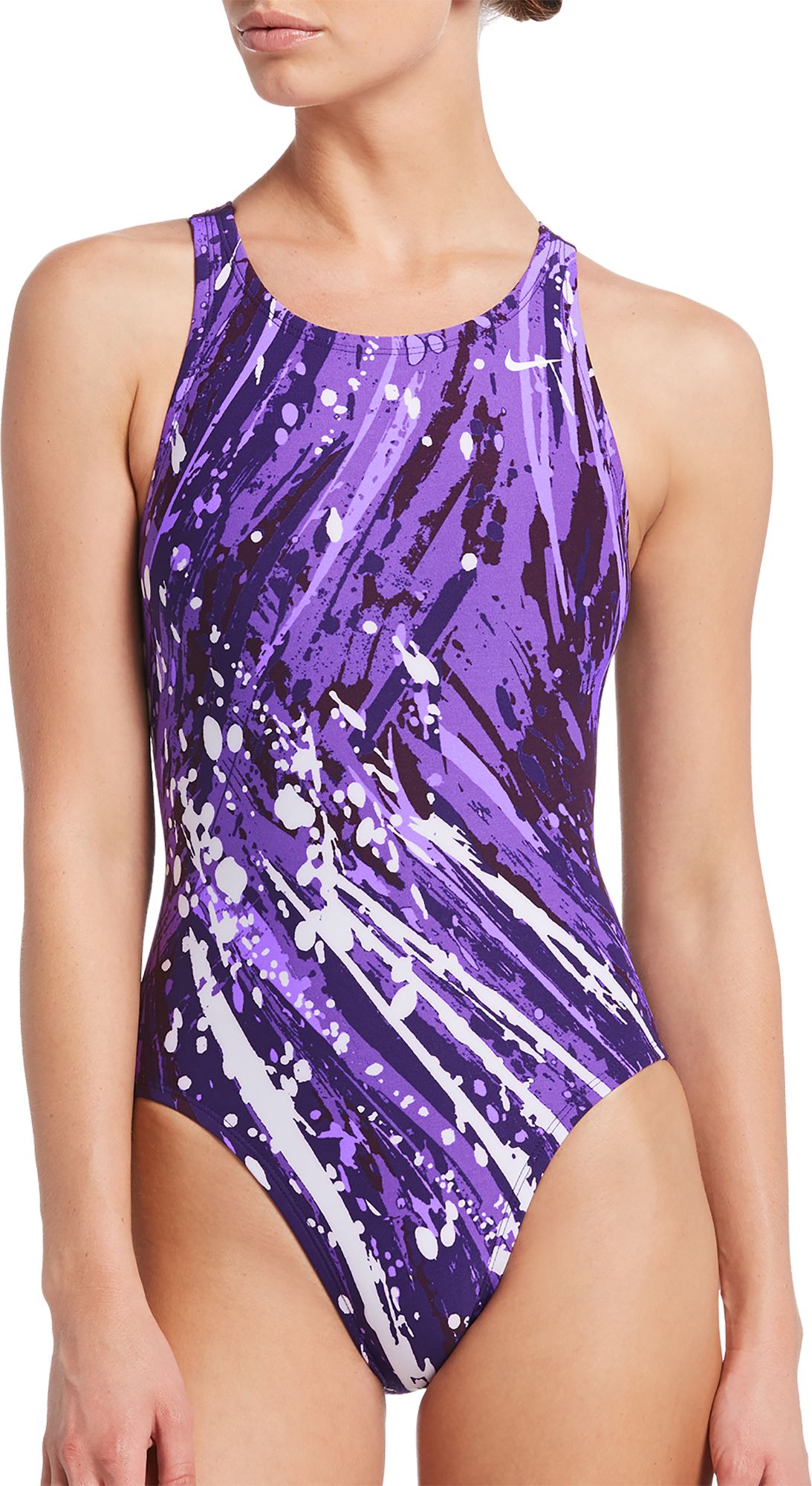 Swim that extra lap with the Nike® Splash Fast Back One Piece Swimsuit for advanced ergonomic details and full range of motion. The high neckline and bust support provides comfort and coverage, while the flat seams reduce chafing.