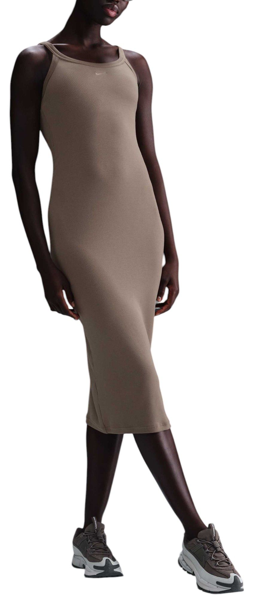 This body-skimming dress is made with soft, mini-ribbed fabric to elevate a classic. Straps that flow into a curved neckline help keep a minimalist look.