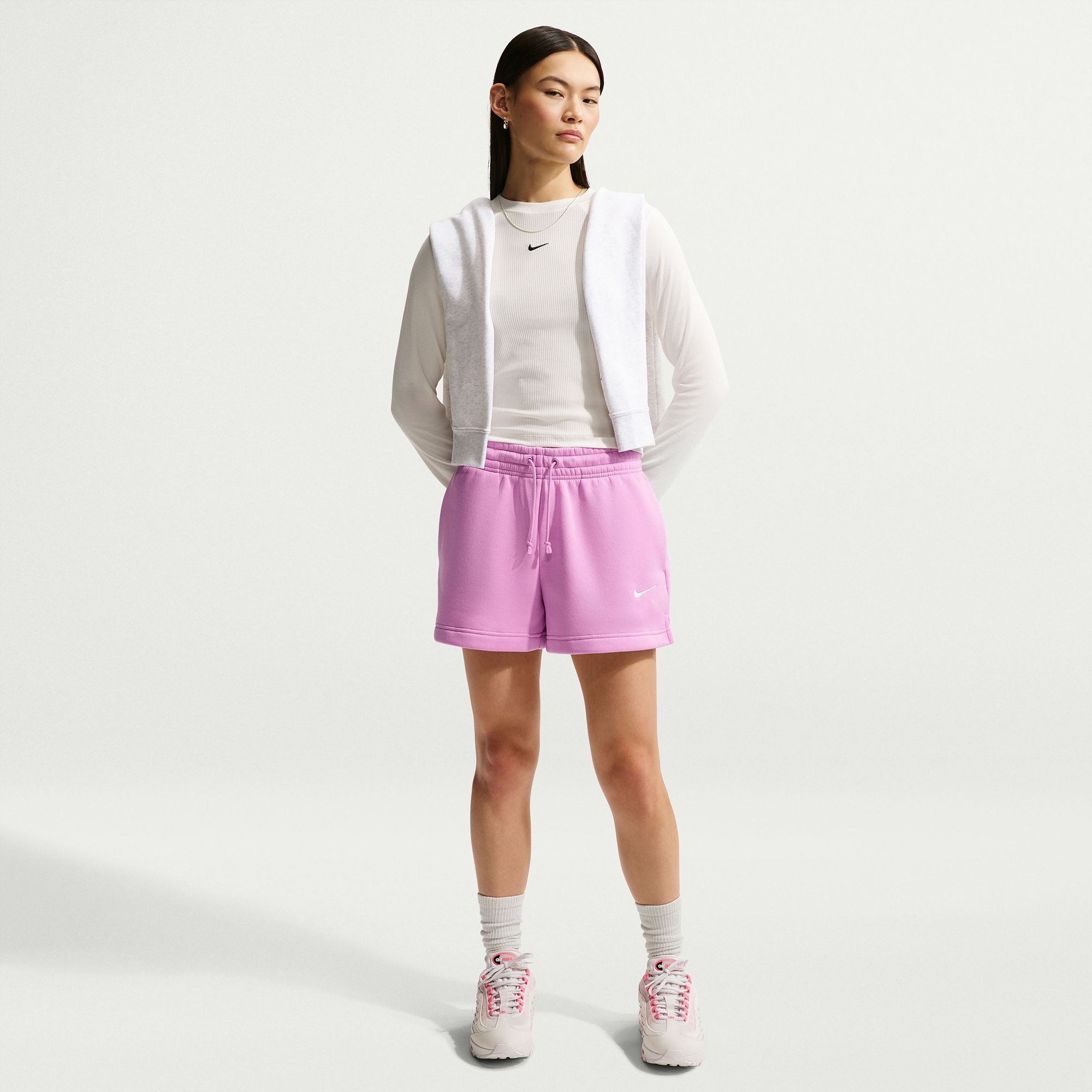 Extra soft on the inside and smooth on the outside, these cozy fleece shorts are elevated by exaggerated finishes like tall ribbing and an elongated drawcord.