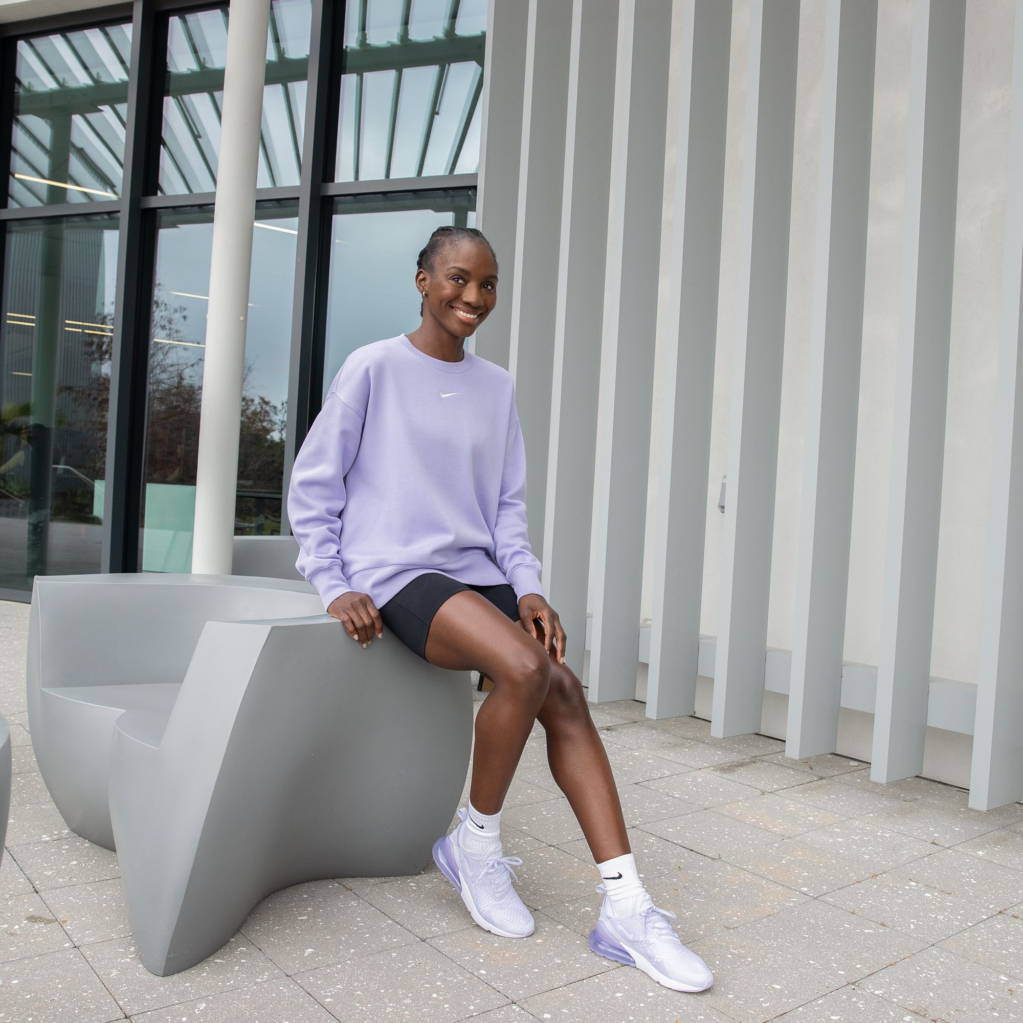 This cozy fleece sweatshirt feels extra soft on the inside and smooth on the outside. Dropped shoulders and extra-wide ribbing enhance the oversized look.