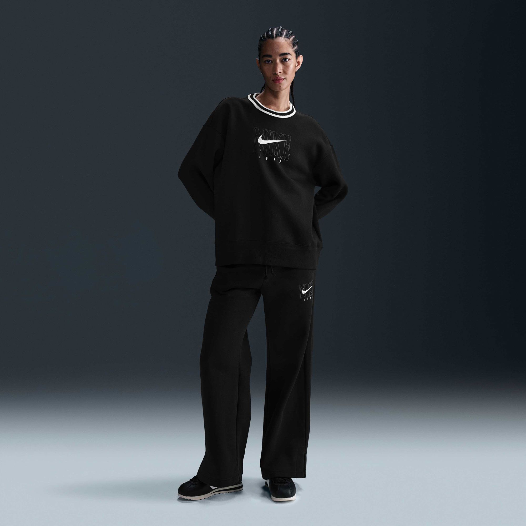 Grounded in style, comfort and versatility, meet our take on luxury loungewear. This statement sweatshirt combines past with present—the old-school feel and important year in Nike's history with the roomy, laid-back feel of this cardigan.