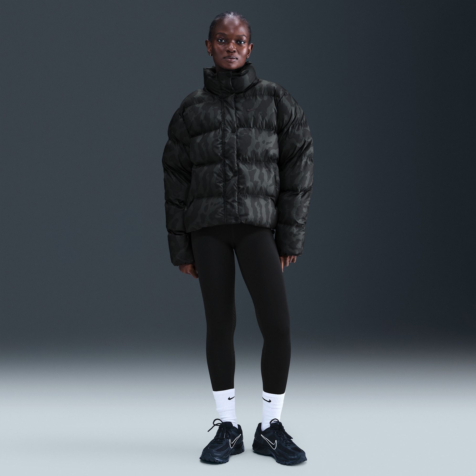 Bundle up in this roomy, hip-length puffer. With a loose collar and Therma-FIT technology, this jacket is designed to keep you cozy even on the coldest days. And to help shield you from the rain, we made this jacket from water-repellent ripstop fabric and added a hood that you can pack away with ease when you don't need it.