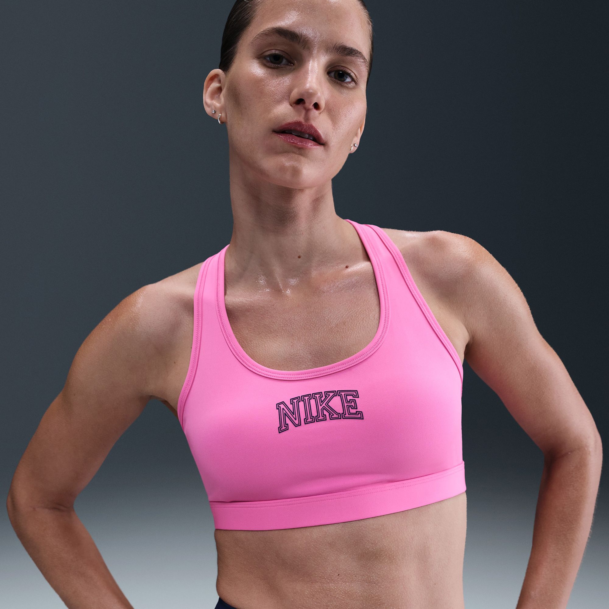 Train hard with everything in place. This sweat-ready bra gives you support with a snug hold and stay-put coverage. Its stretchy material wicks moisture and recovers its shape wear after wear, so it's ready to go again whenever you are.
