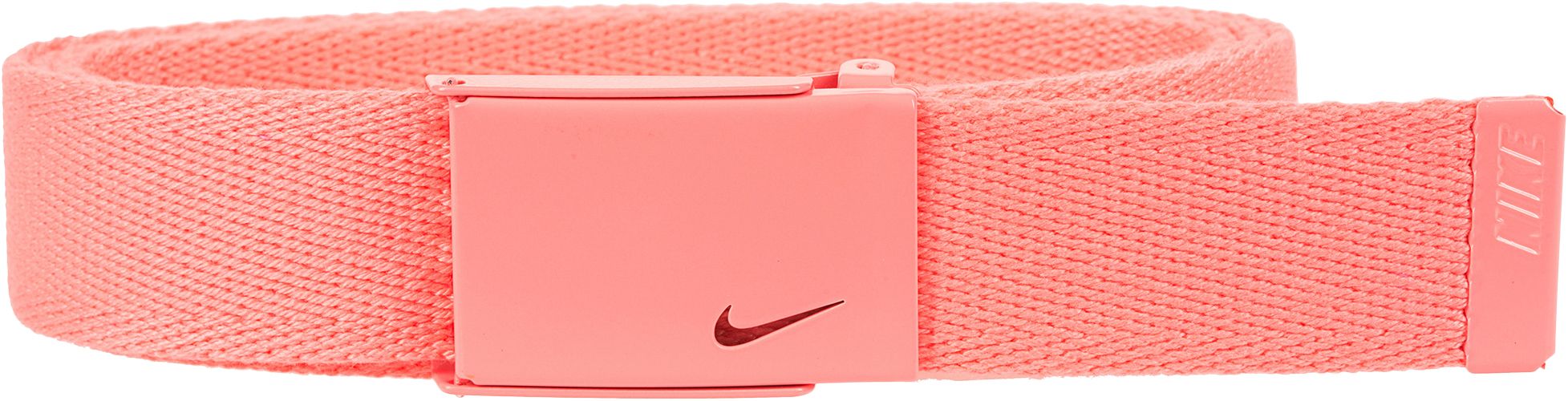 Bright and bold, the Nike Women's Tech Essentials Web Golf Belt is a chic must-have for every golfer. The web strap construction and clamp buckle delivers a perfect fit each and every time, and Nike Personalized Fit technology lets you cut the belt to a custom length for ultimate comfort. Equipped with a bottle opener on the back of the buckle, it even helps you stay refreshed on the course.