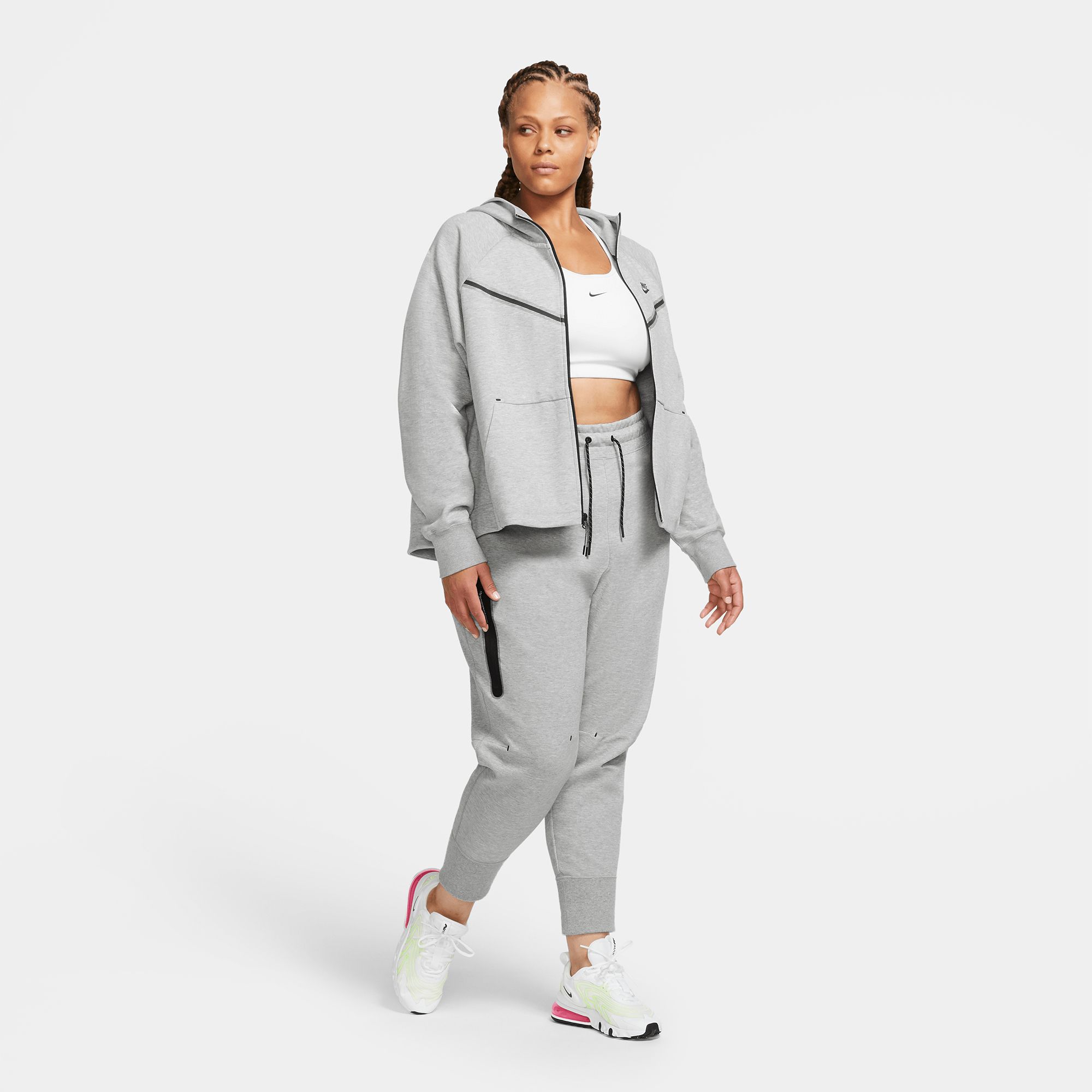 I'm not plus-sized but I went for this sweater as I wanted an oversized fit however this did not give that. I wanted it long enough to cover my behind but it just was too wide and too short more of a cropped fit. I love the material though it is great quality but I think next time I will choose the regular tech fleece.