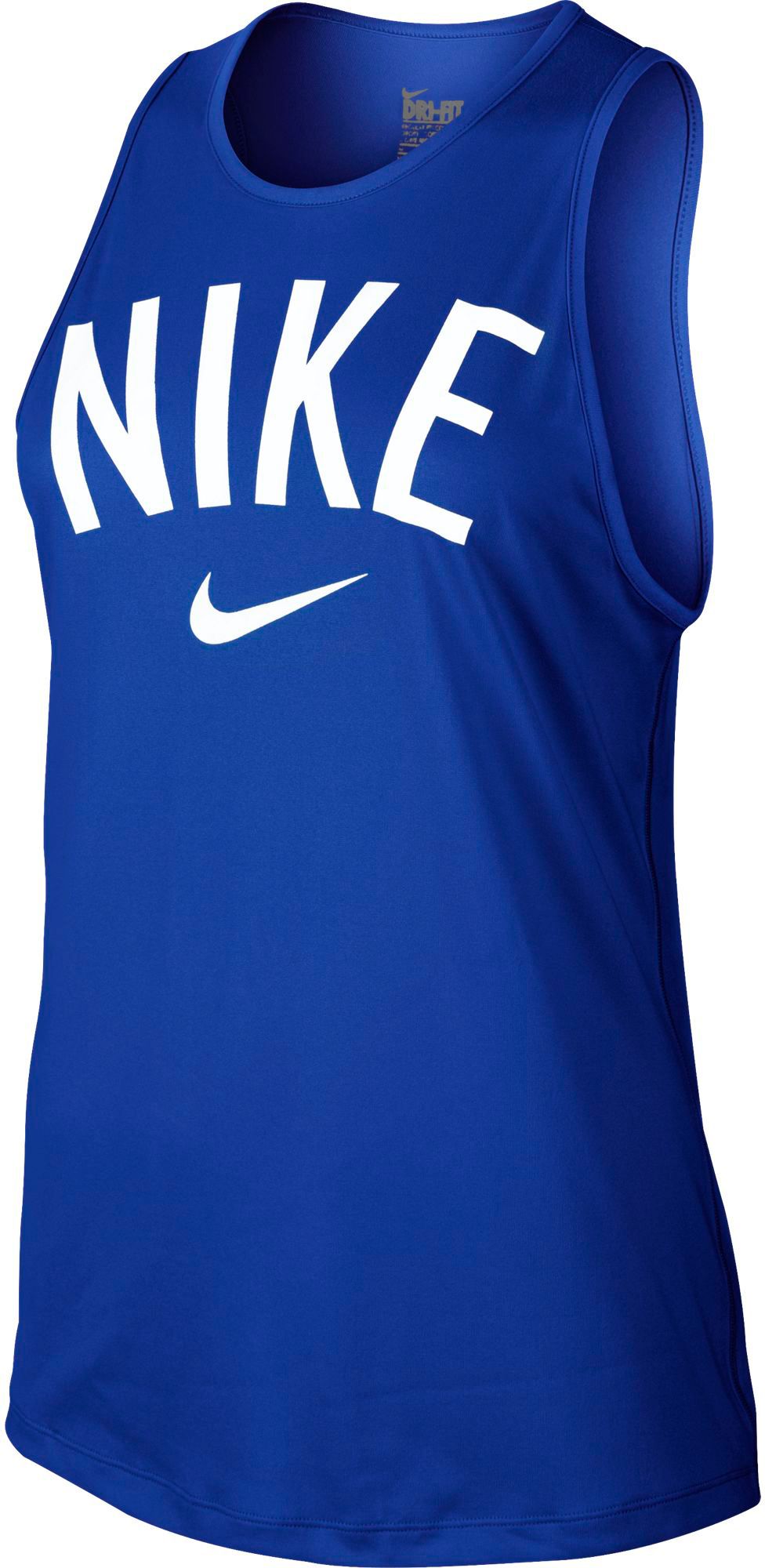 Show off your hard work in the Nike® Women’s Tomboy Graphic Tank Top. This loose-fit shirt features Dri-FIT® fabric that pulls sweat away from your skin for comfort and dryness. A wide racerback design inhibits restriction for a wide range of motion, and a plated jersey design with a swoosh graphic adds style. Anything they can do you can do better in the Tomboy Graphic Tank Top.