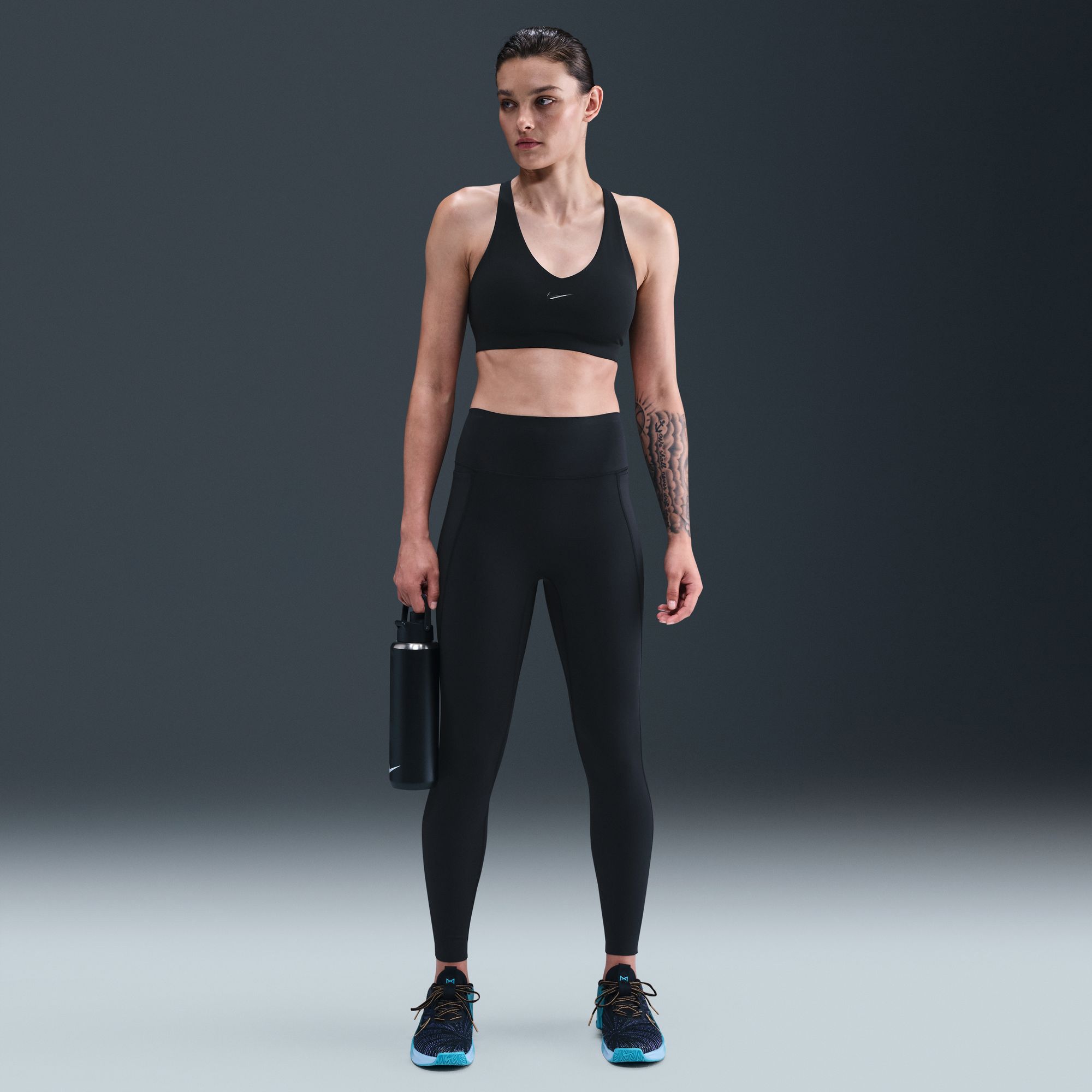 Don't let em see you sweat. This Universa sports bra is made with Nike Stealth Evaporation Tech that conceals moisture. Midweight and ultrasmooth, this sleek bra gives you a snug hold and offers a smooth fit with sculpted pads and low-profile design lines.