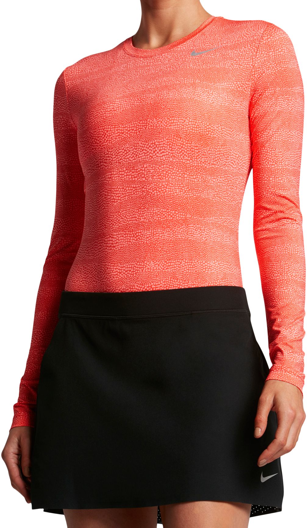 Layer up with a high fashion look in the Nike Women’s UV Crew Golf Baselayer. Built with a stretchy polyester spandex blend for a snug, comfortable fit, this long sleeve top features Dri-FIT technology keeping you dry and comfortable throughout your round. The UPF 40+ protection also keeps you protected from the sun’s harmful UV rays.