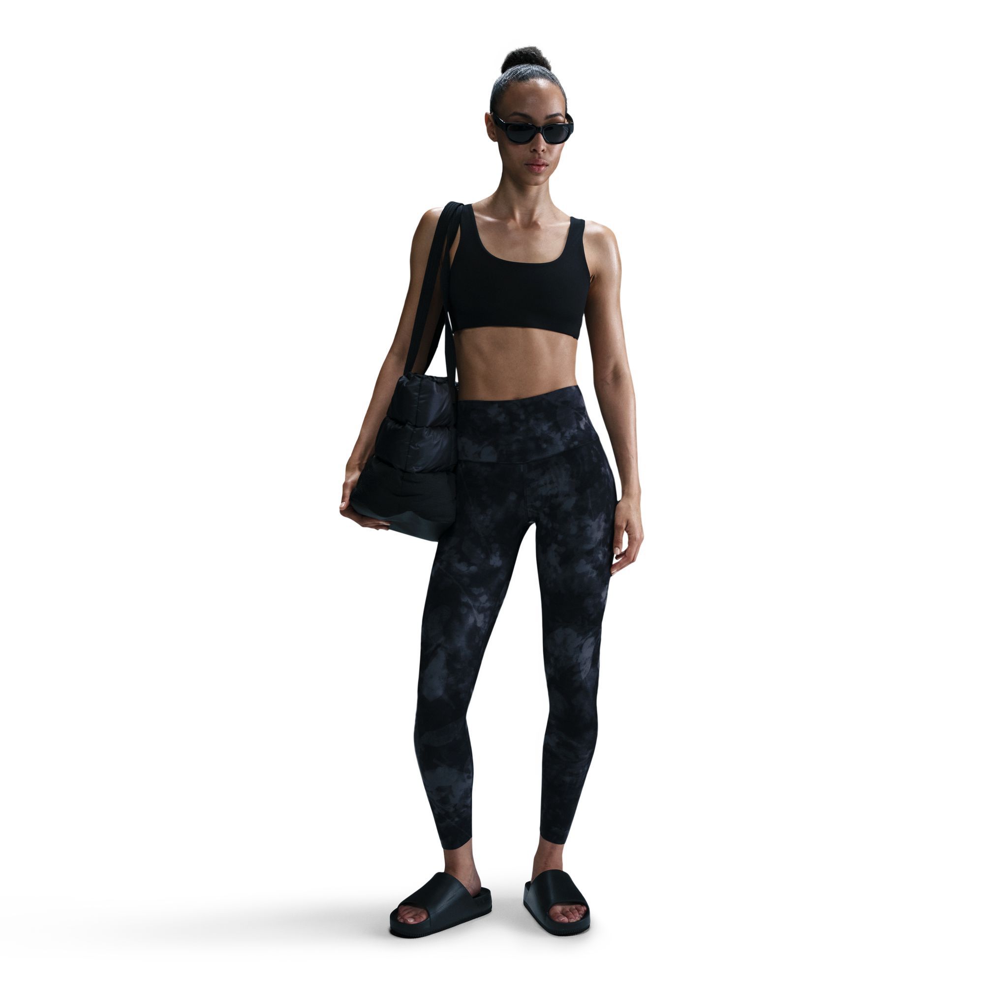 Wide, high-rise elastic waistband sits at the natural waist and helps provide core support