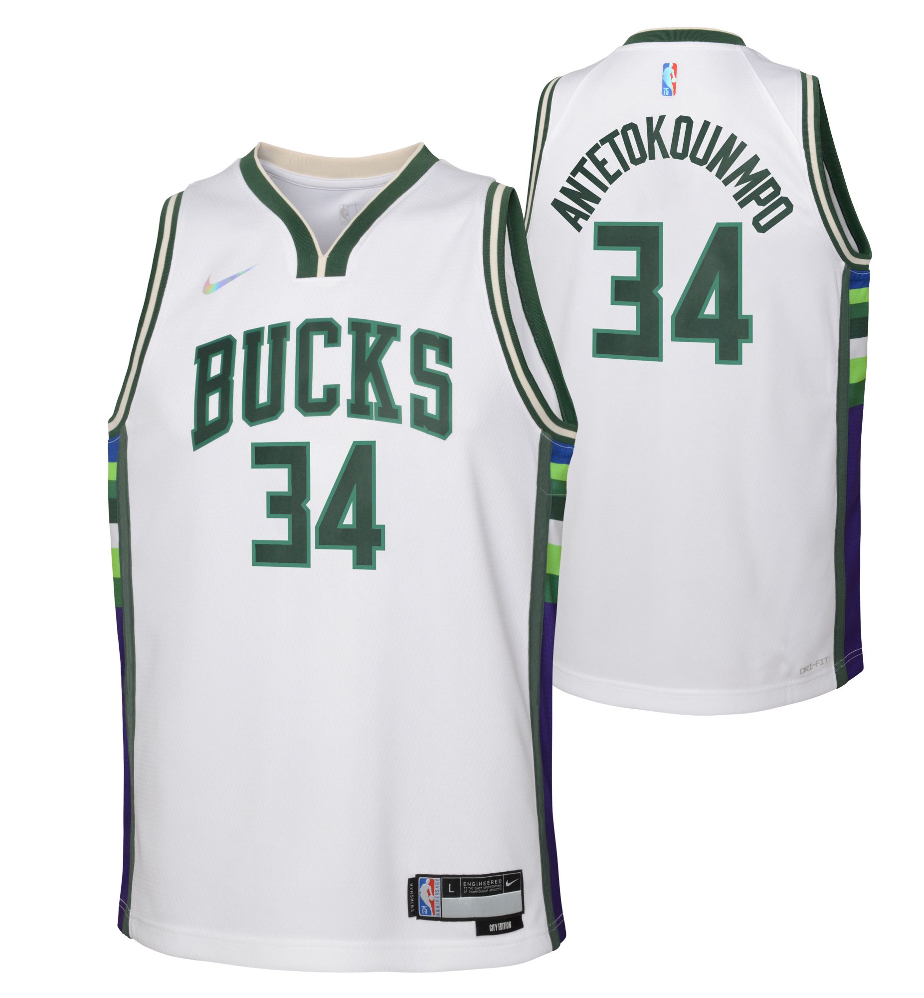 Nike Youth 2021-22 City Edition Milwaukee Bucks Giannis Antetokounmpo #34 White Swingman Jersey