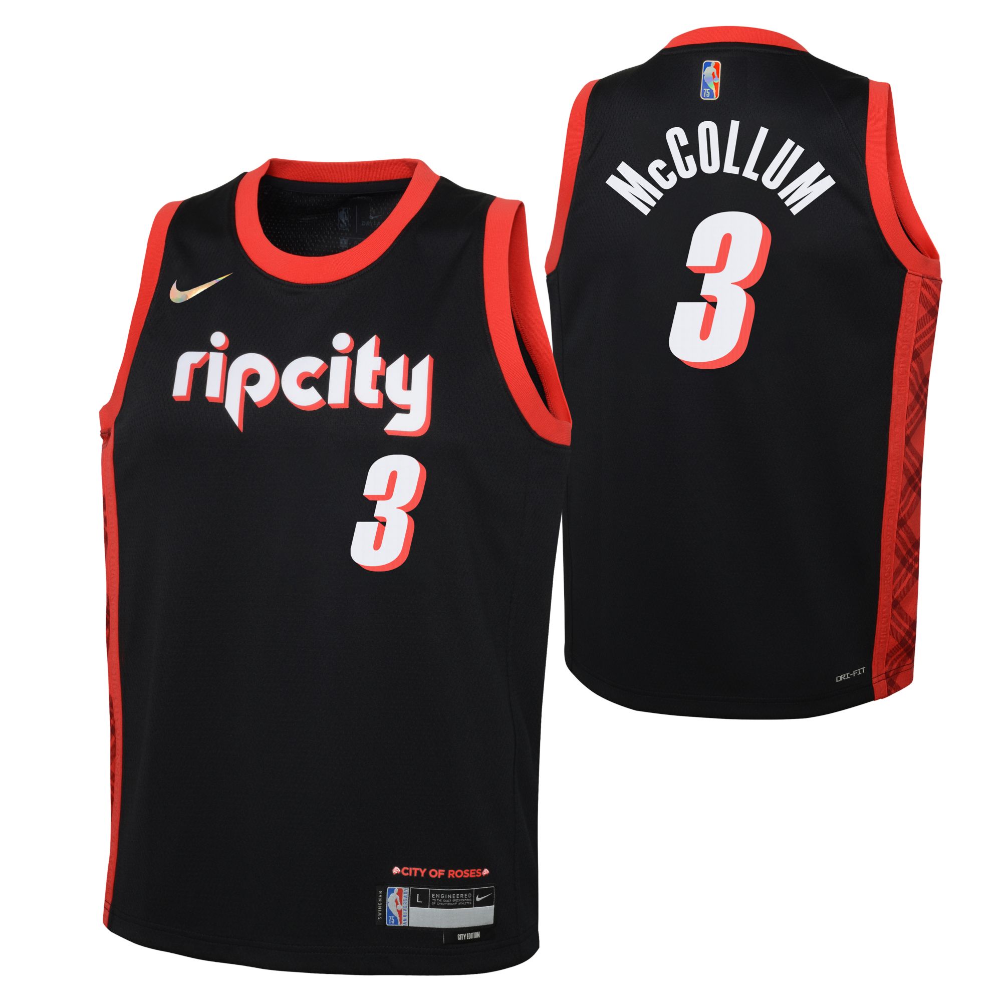 Nike Youth 2021-22 City Edition Portland Trail Blazers C.J. McCollum #3 Black Swingman Jersey
