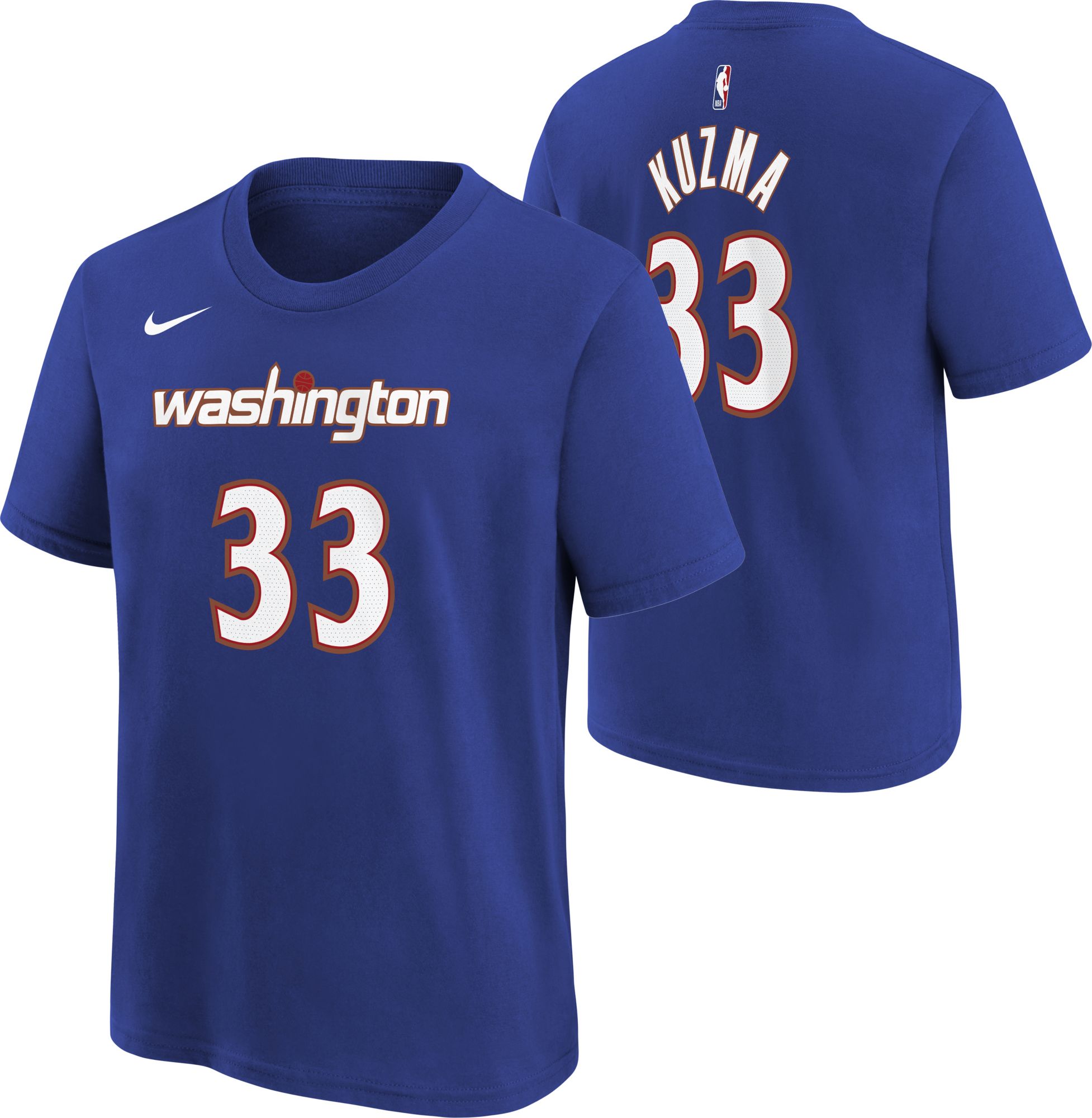 Nike Youth 2021-22 City Edition Washington Wizards Kyle Kuzma #33 Blue Player T-Shirt
