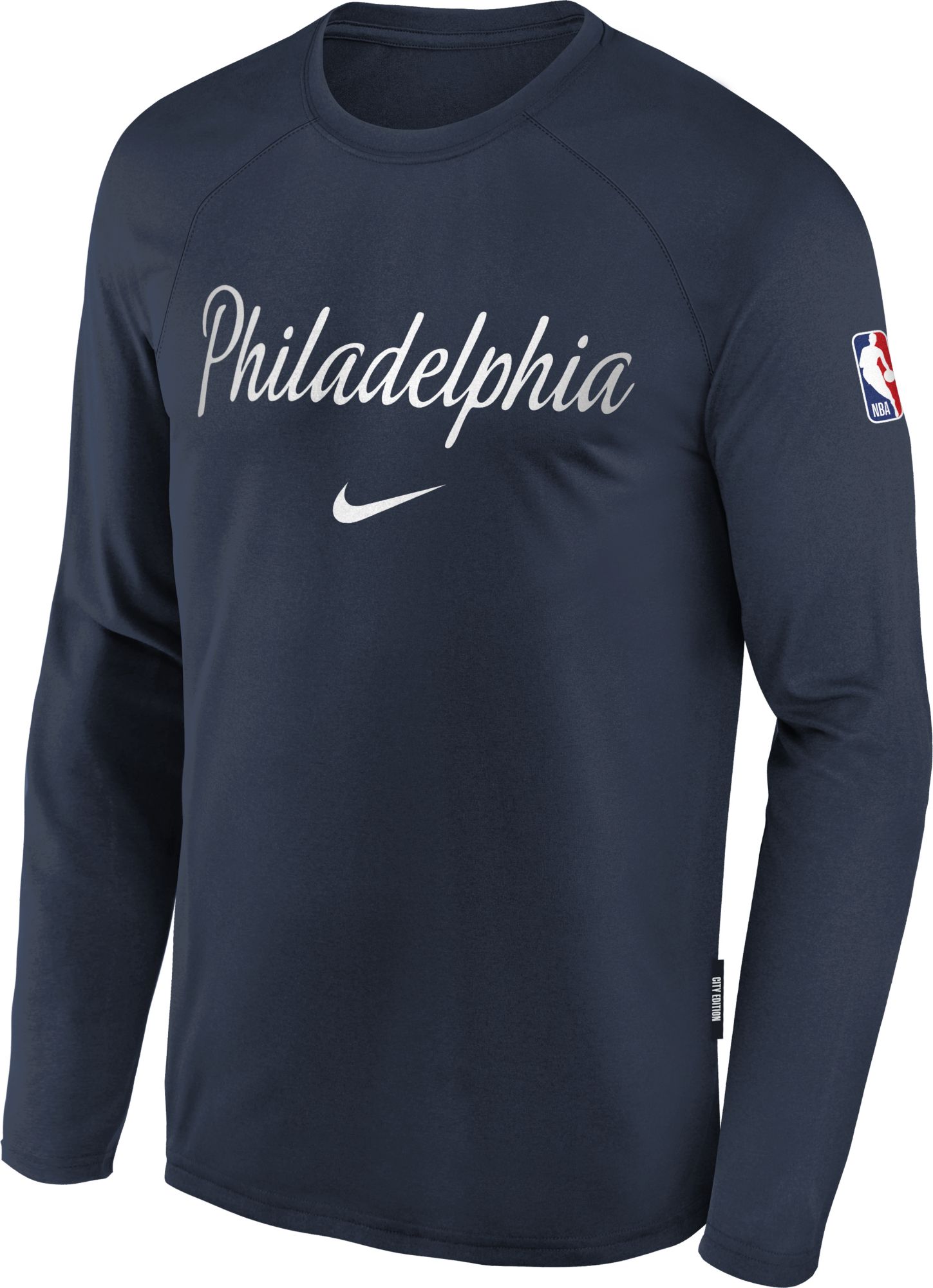 Nike Youth 2025-26 City Edition Philadelphia 76ers On Court Pregame Long Sleeve Shirt