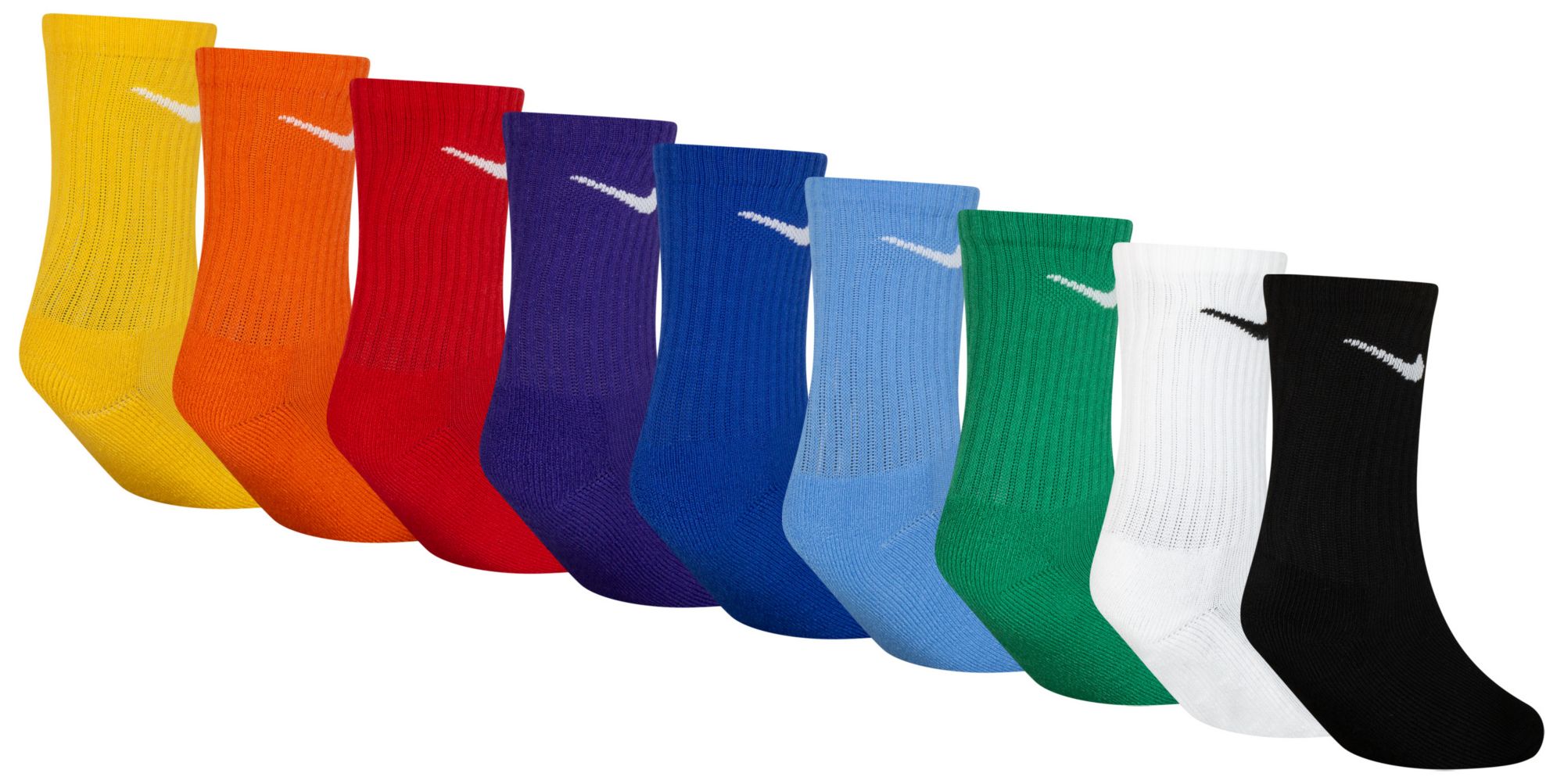 Includes 3 pairs of socks with an allover jacquard knit "Just Do It" pattern and 6 pairs of socks in a flat knit construction