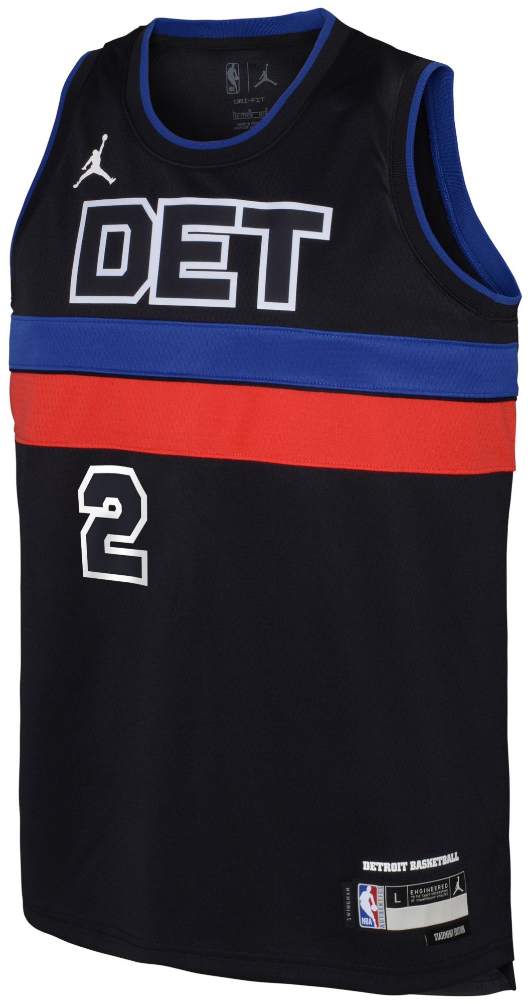 Jordan Youth Detroit Pistons Cade Cunningham #2 Black Swingman Statement Jersey