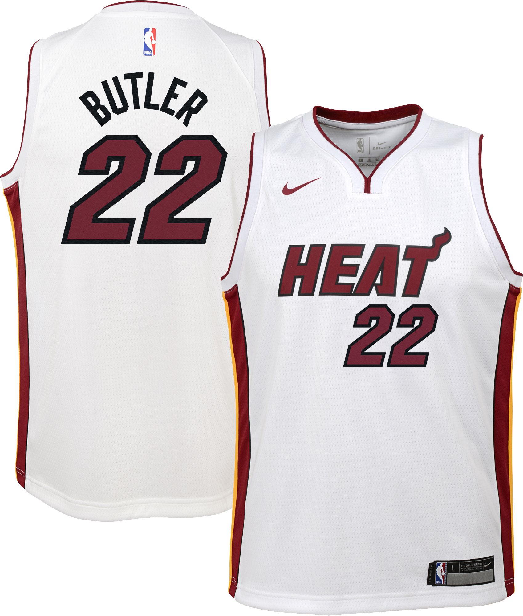 Have you little baller rep his or her squad and cheer on their favorite star with the Nike® Miami Heat Jimmy Butler #22 Swingman Jersey featuring Dri-FIT® technology.