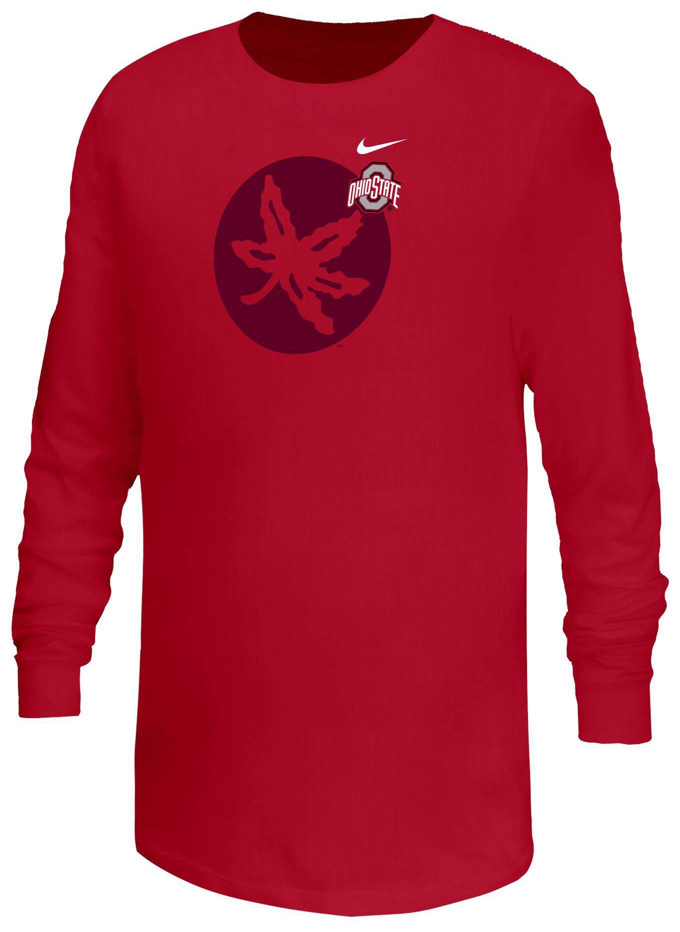 Nike Youth Ohio State Buckeyes Red Core Cotton Mascot Logo Long Sleeve T-Shirt