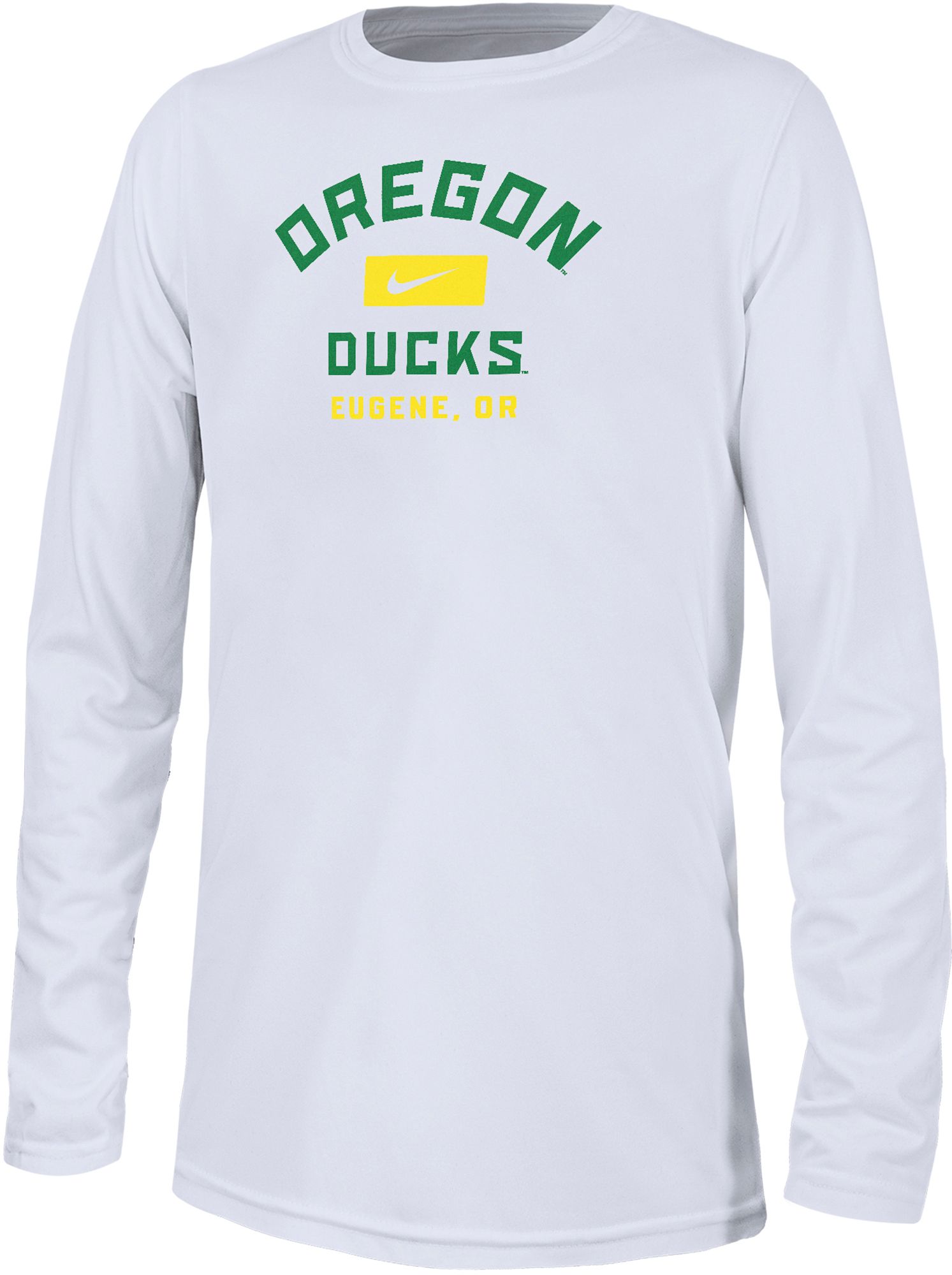 Nike Youth Oregon Ducks White Dri-FIT Legend Arch Wordmark Long Sleeve T-Shirt