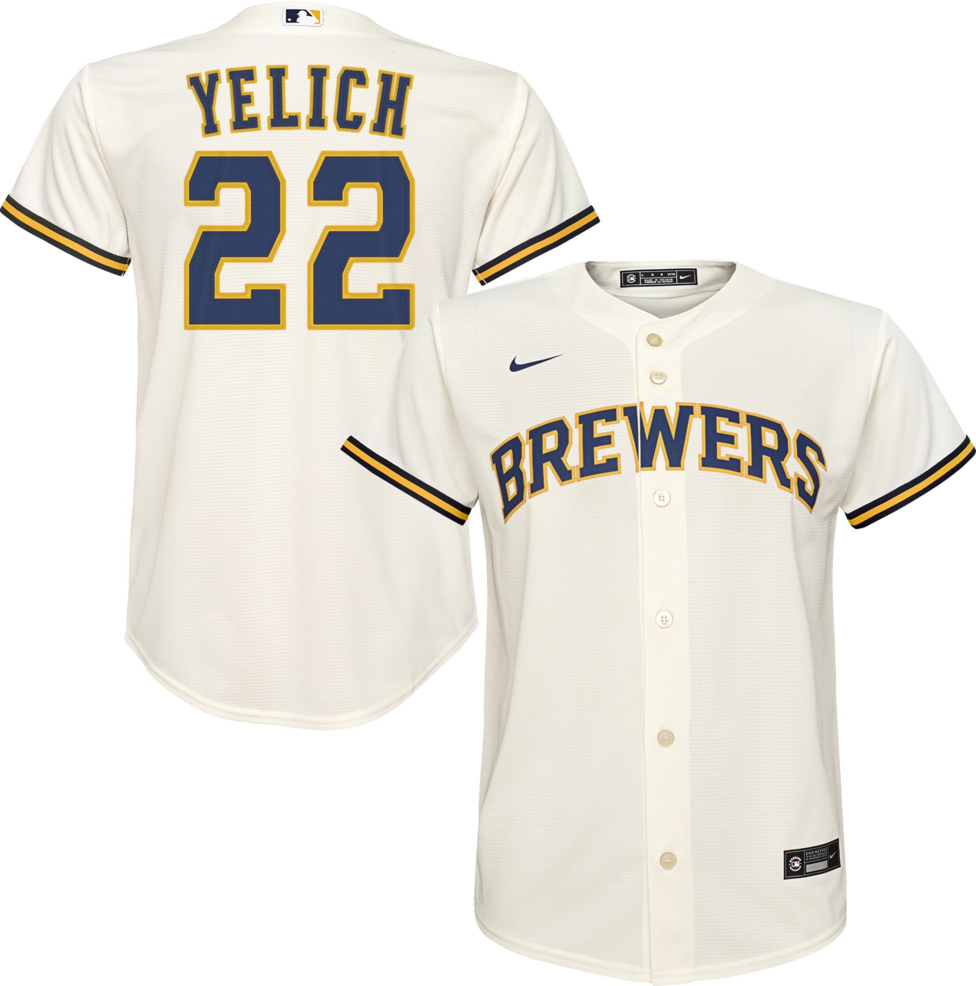 Gear up your little fan for another season of America’s pastime with the newly branded Youth Nike® Milwaukee Brewers Christian Yelich #22 Cool Base® Jersey.