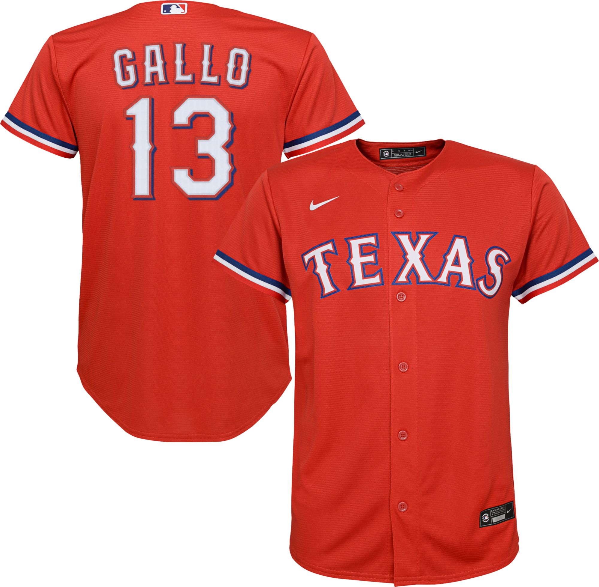 Gear up your little fan for another season of America’s pastime with the newly branded Youth Nike® Texas Rangers Joey Gallo #13 Cool Base® Jersey.