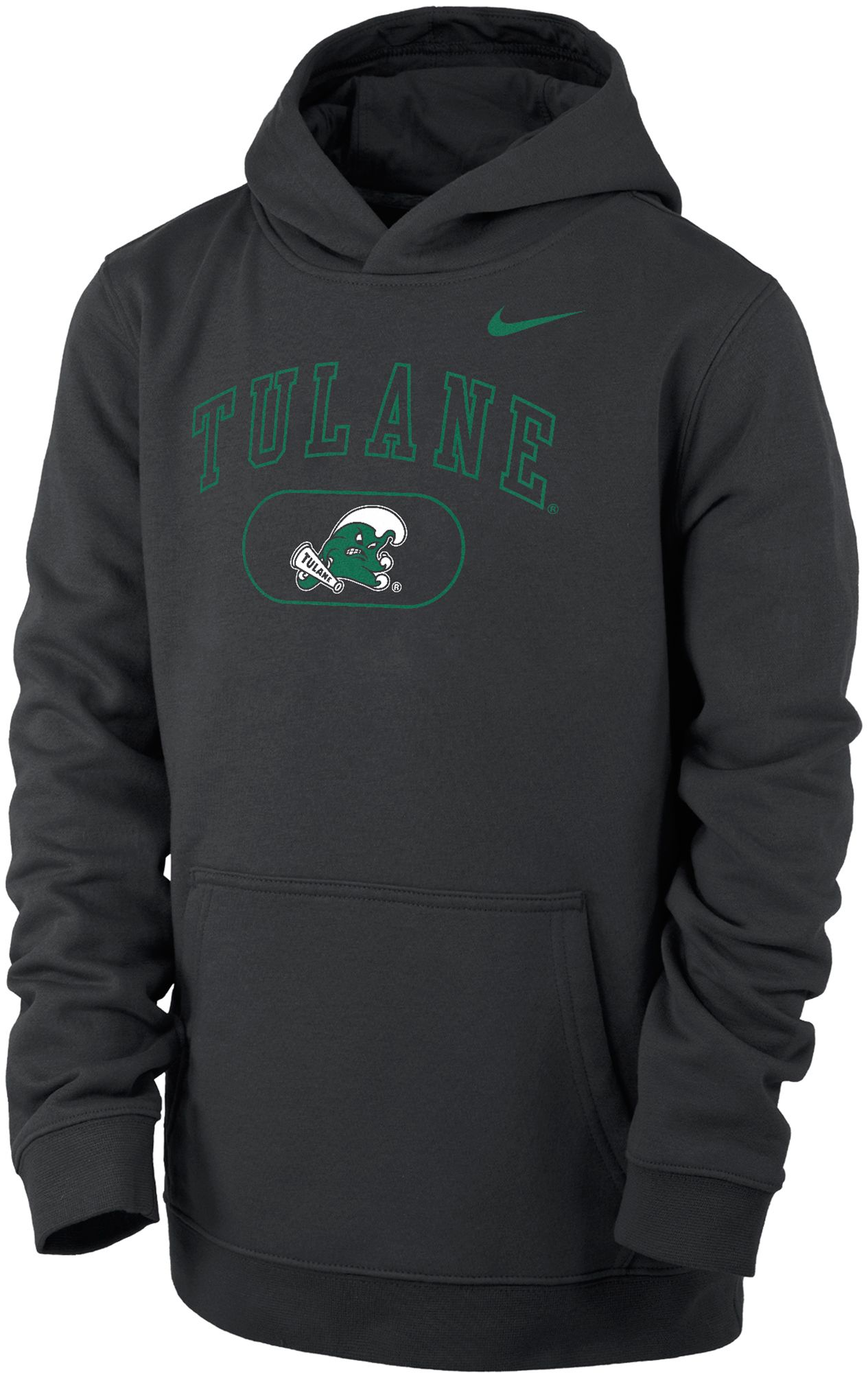 Nike Youth Tulane Green Wave Black Club Fleece Pill Arch Wordmark Pullover Hoodie