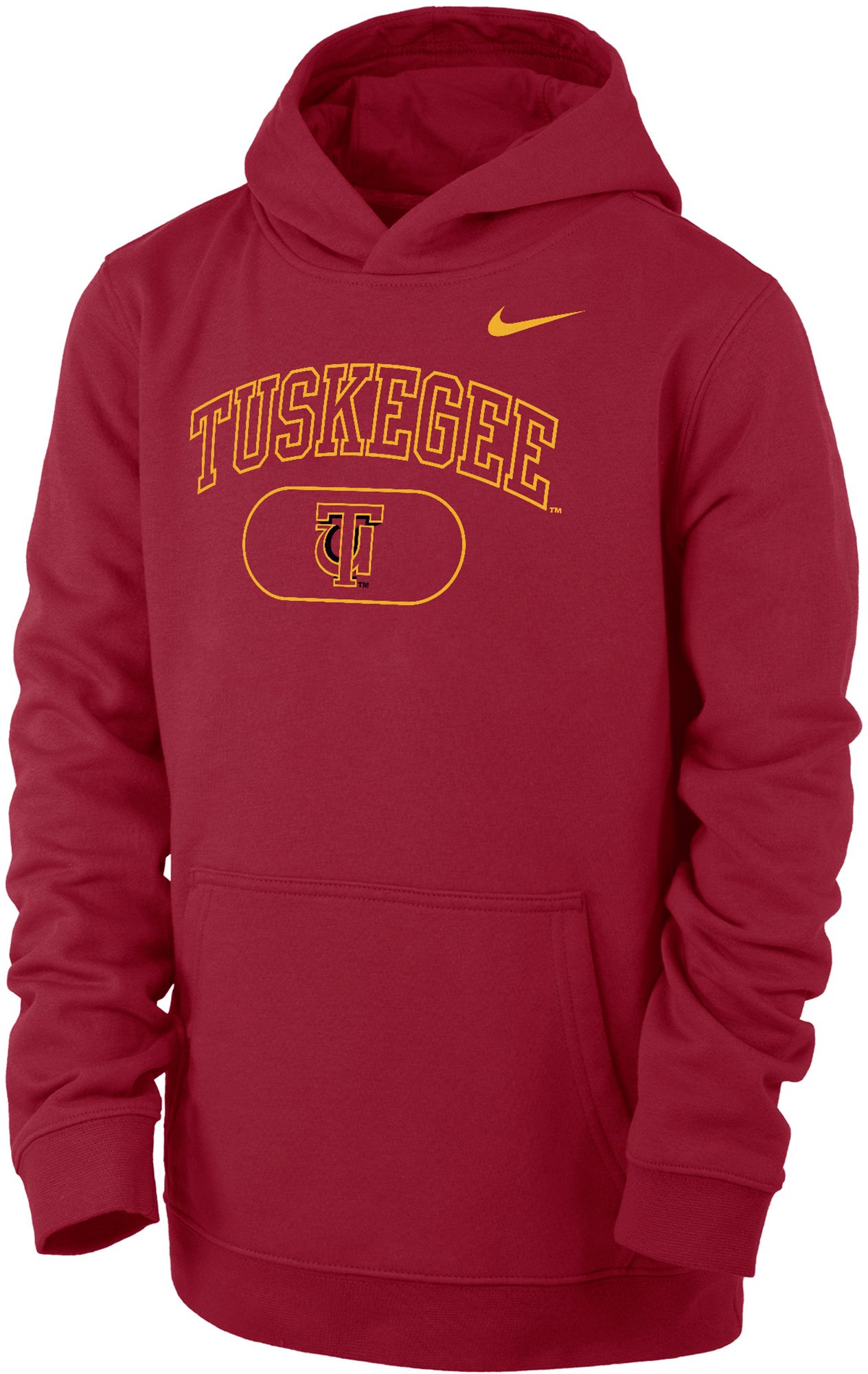 Nike Youth Tuskegee Golden Tigers Crimson Club Fleece Pill Arch Wordmark Pullover Hoodie