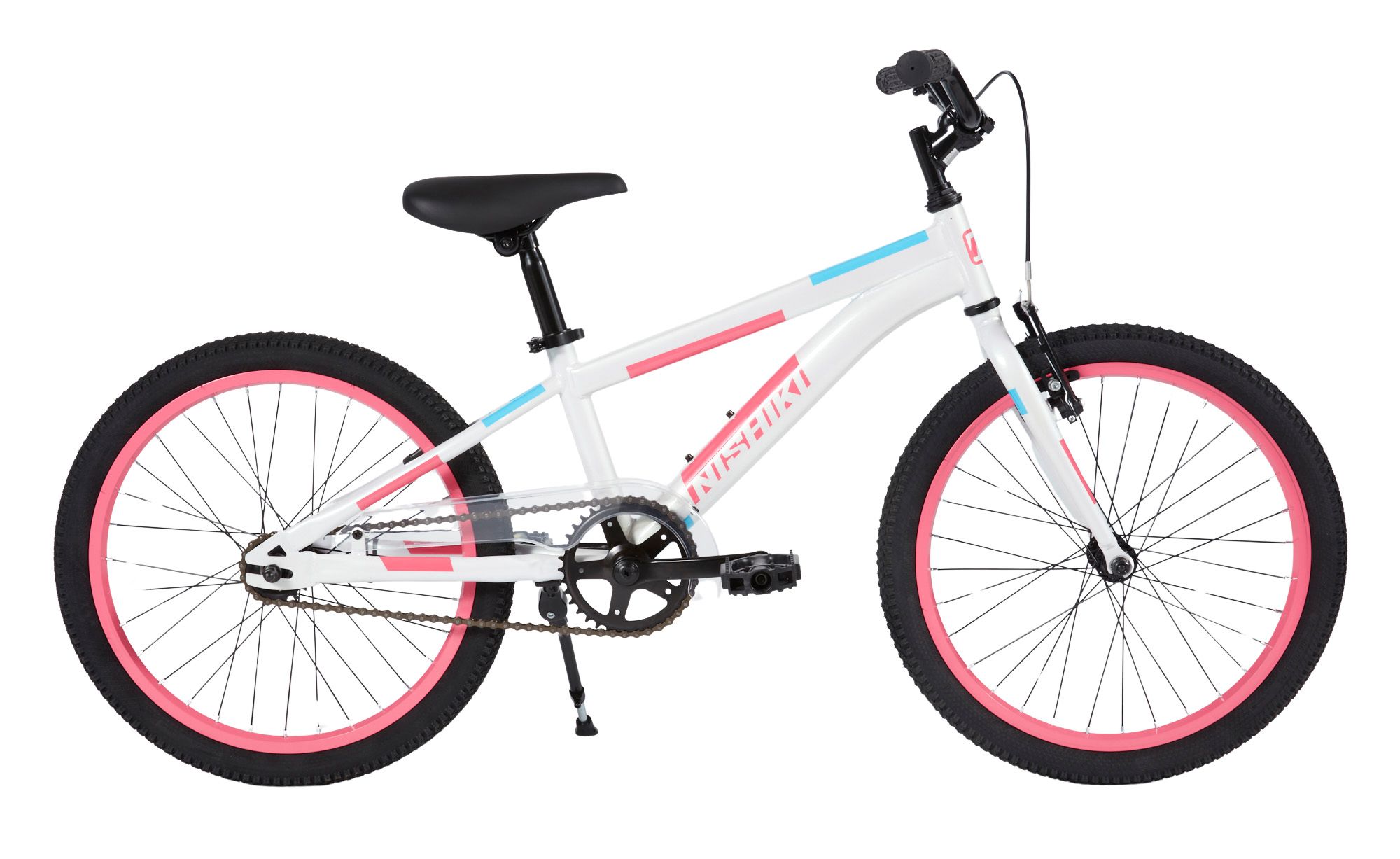Ride in style on the 20-inch Durango Racer MTB-style bike. Featuring bold colors and cool specs, the Durango Racer has what you need for a great ride. The simplicity of a single speed MTB-style bike will help your little rider graduate from a sidewalk bike to larger bikes. The durable steel frame features front and rear handbrakes for solid control. This MTB-style bike includes an alloy quick release and padded saddle to adjust the seat height for the right fit. A fun ride that will help your child love to ride bikes!Manufacturer may substitute components with components of equal or greater performance level.
