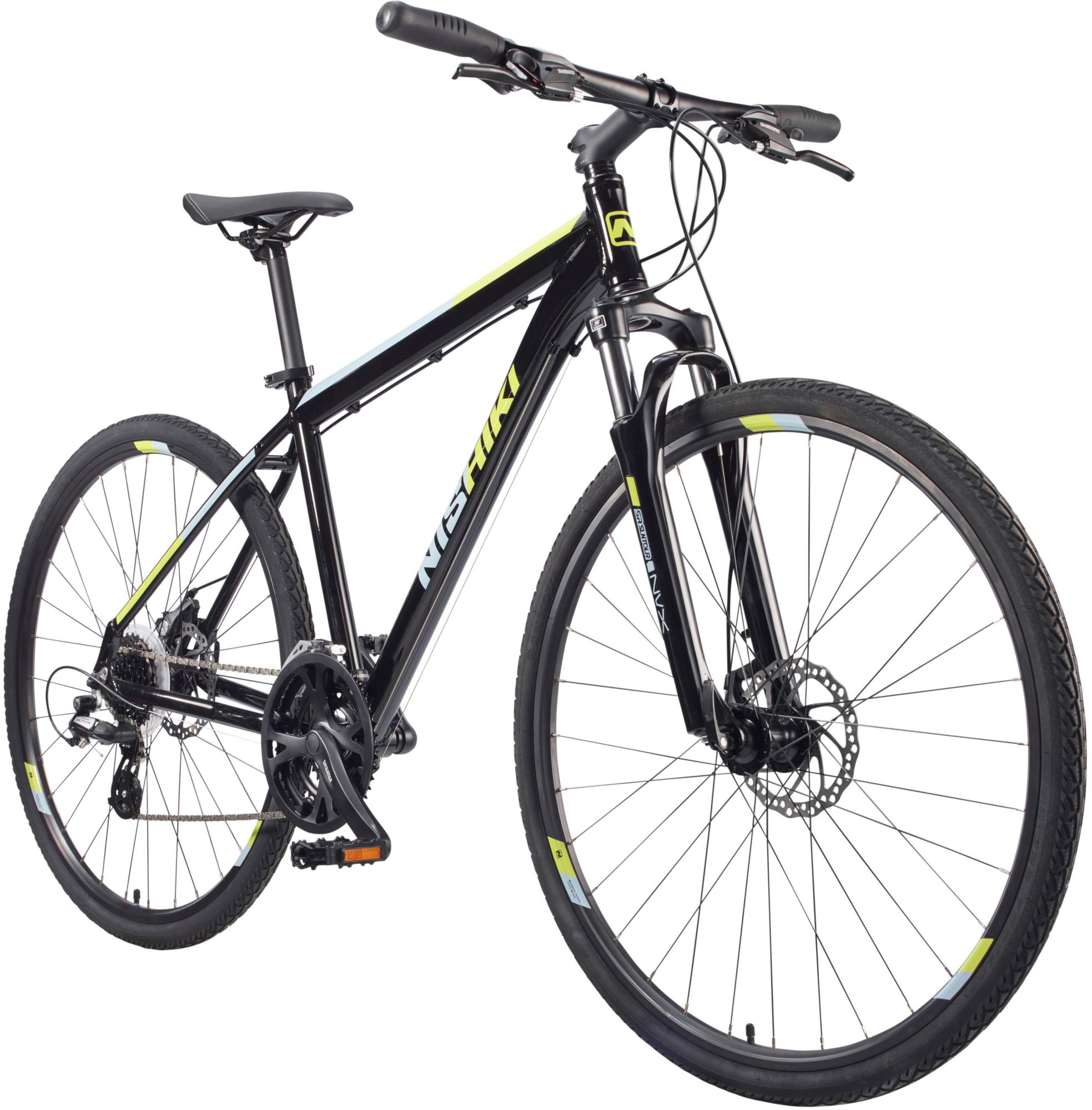 Whether you're commuting to class or trekking on narrow singletracks, experience it all with the Nishiki® Men's Anasazi Hybrid Bike. Built with a durable aluminum frame, this bike cruises with stability. The reliable 700C wheels withstand terrain from rocky roads to smooth pavement, while the disc brakes deliver optimum stopping control.