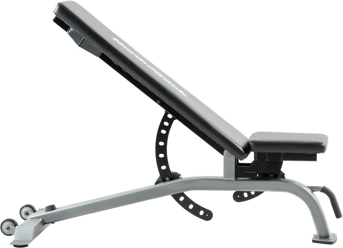 The NordicTrack Adjustable Weight Bench allows you to bring the weight room into your home. Target specific muscle groups for a complete and challenging workout. Easily adjust your weight bench from a flat to an incline or military position to develop and tone your shoulders, upper chest, and triceps. Training in a decline position will target your lower chest, lats, triceps, and front delts.
