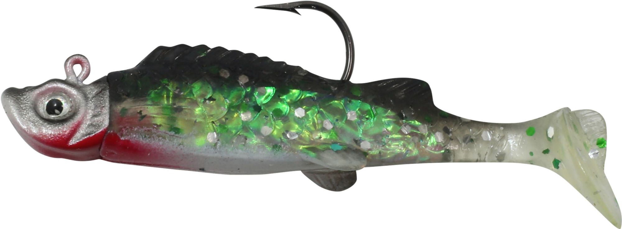 • Molded plastic with a "holographic" Baitfish-Image® body and paddle tail that thumps at all speeds attracting fish