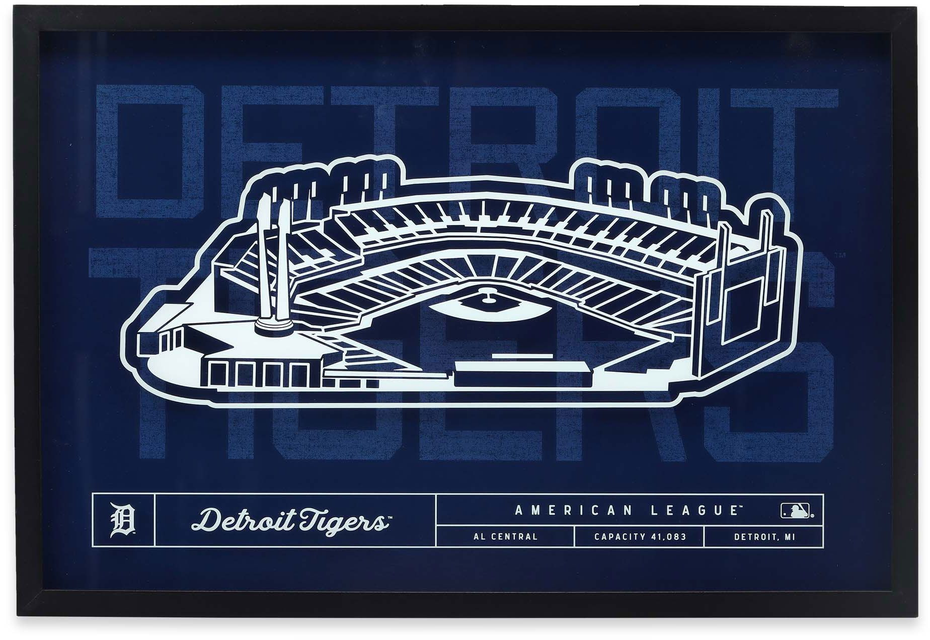 Open Road Brands Detroit Tigers Navy Stadium Glass Framed Sign