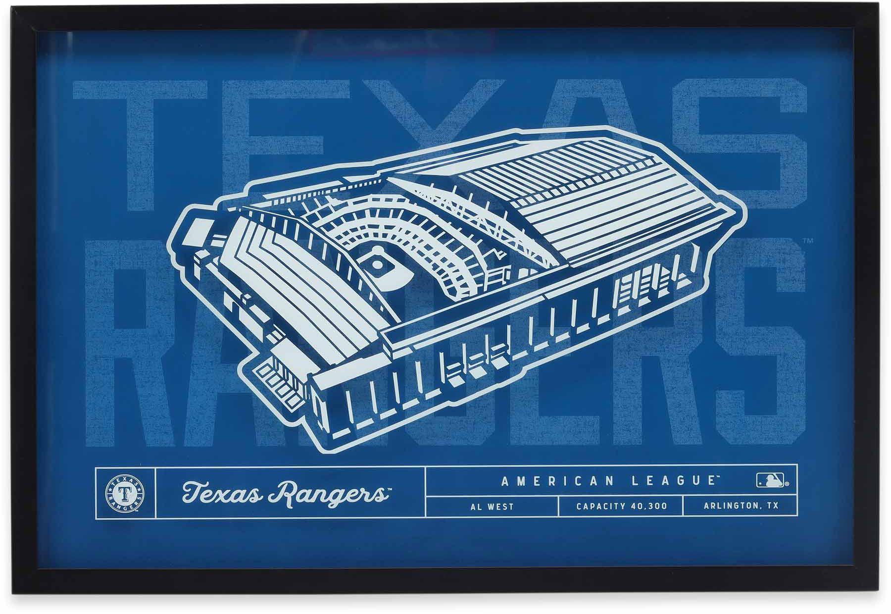 Open Road Brands Texas Rangers Royal Stadium Glass Framed Sign