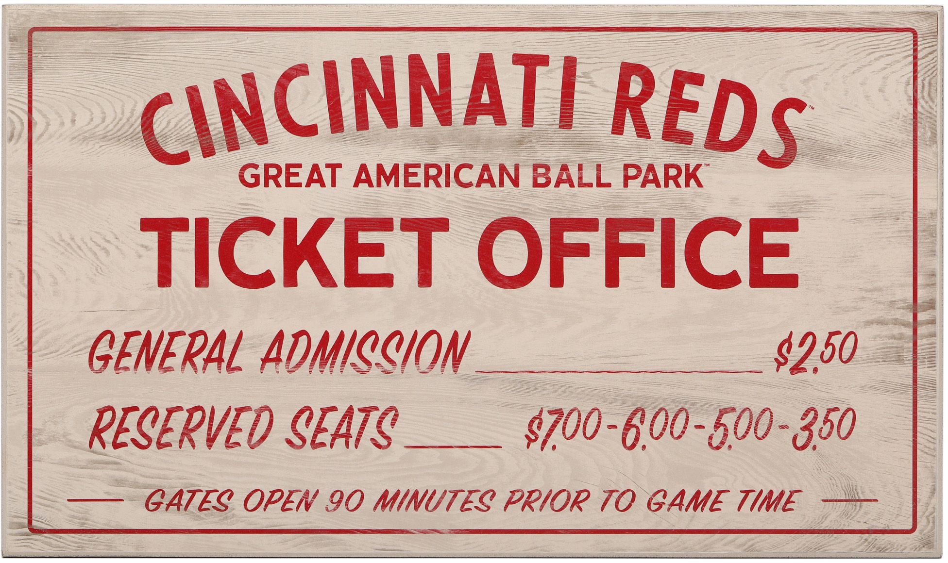 Open Road Cincinnati Reds Ticket Office Sign