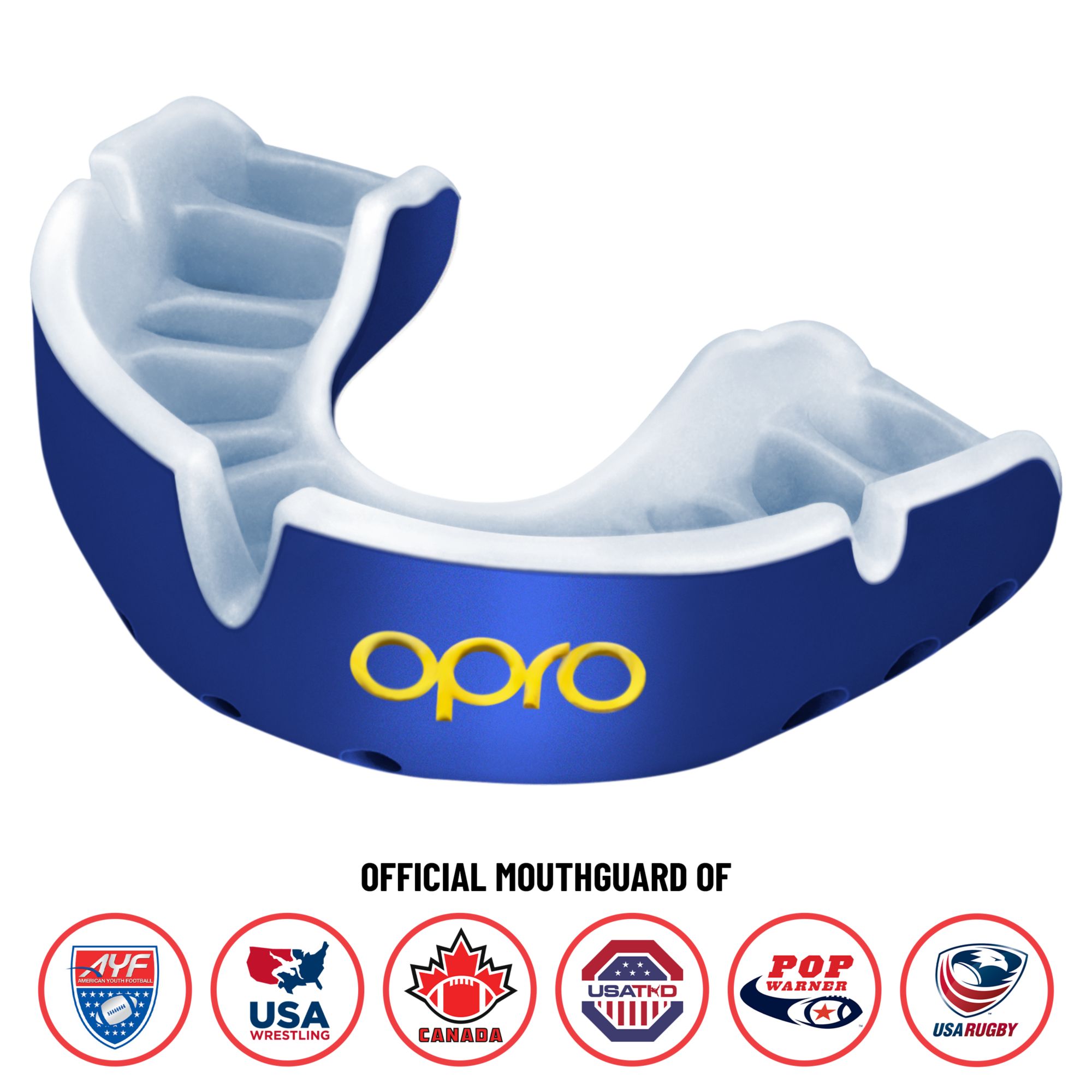 Brought to you by the world’s most innovative mouthguard brand. The OPRO Self-Fit Gold convertible mouthguard combines a dual layer outer construction with an ultra hi-flow gel inner channel to provide an outstanding level of comfort and protection. Includes a patented single compression cage; this revolutionary fitting technology harnesses the immense power of the jaw to compress the mouthguard over the teeth and gums for the perfect impression and truly unique fit.