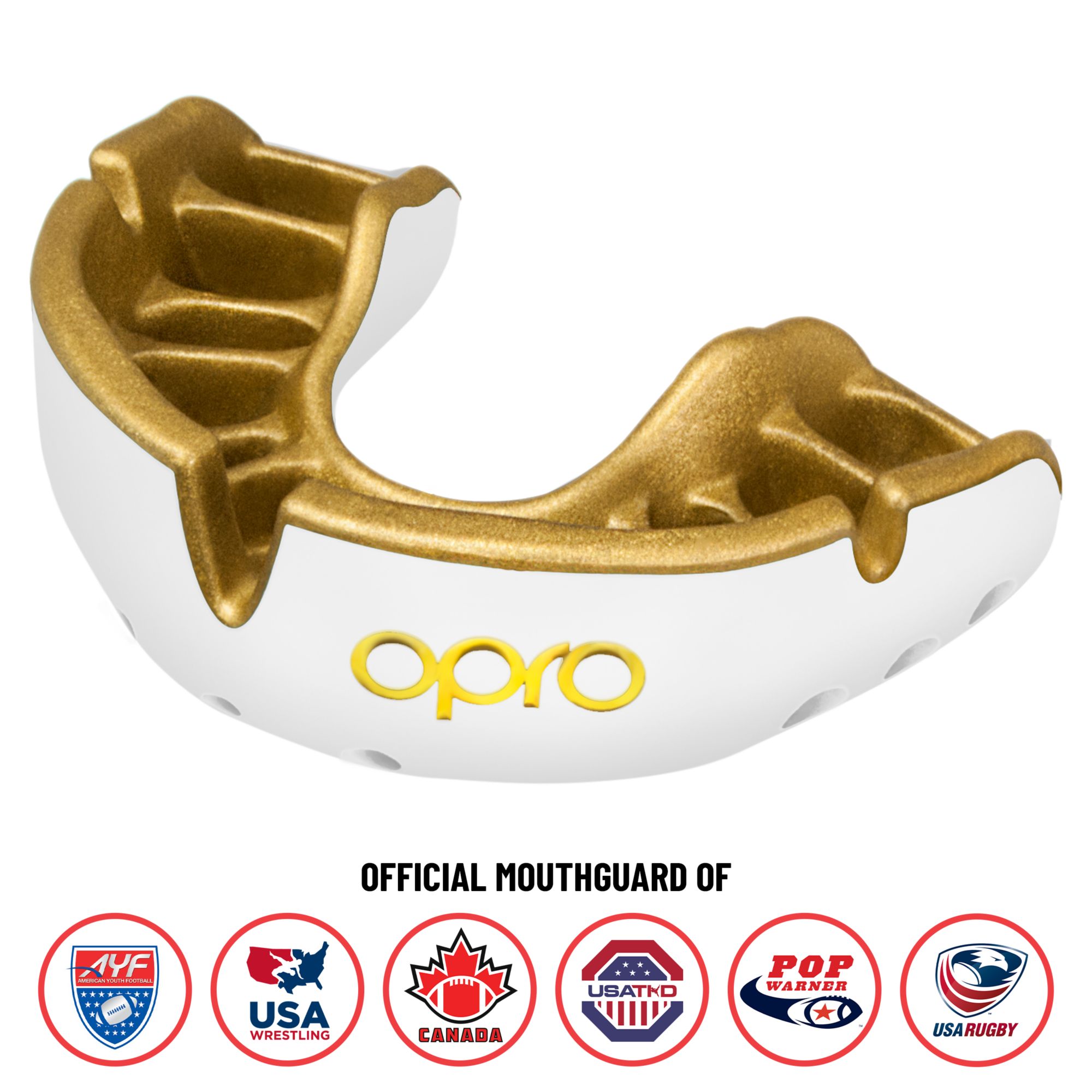 Brought to you by the world’s most innovative mouthguard brand. The OPRO Self-Fit Gold convertible mouthguard combines a dual layer outer construction with an ultra hi-flow gel inner channel to provide an outstanding level of comfort and protection. Includes a patented single compression cage; this revolutionary fitting technology harnesses the immense power of the jaw to compress the mouthguard over the teeth and gums for the perfect impression and truly unique fit.