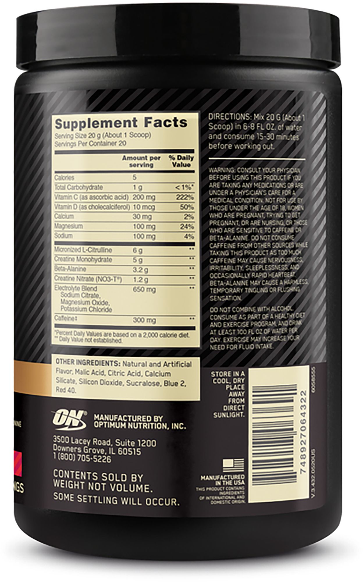 Mix 1 scoop of the powder into 6 to 8 fluid ounces of cold water 15 to 30 minutes before exercise
