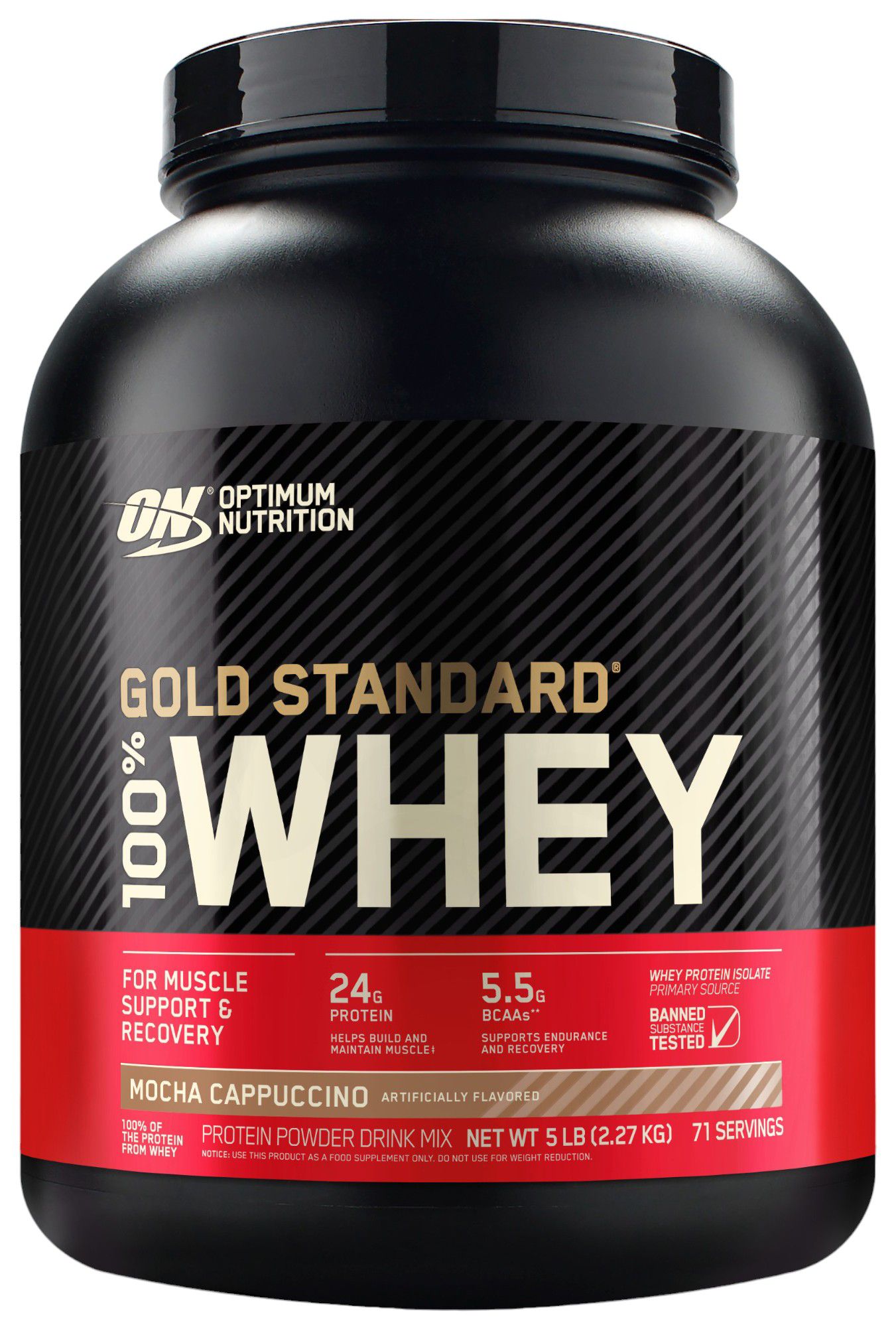 Gold Standard 100% Whey Protein powder supports muscle and post-workout recovery with 24g of quality protein and 5.5g of naturally occurring BCAAs per serving. You’ll always look forward to getting the protein you want in your active, performance-driven lifestyle. It’s everything you’ve come to expect from Optimum Nutrition: The World’s #1 Sports Nutrition Brand.