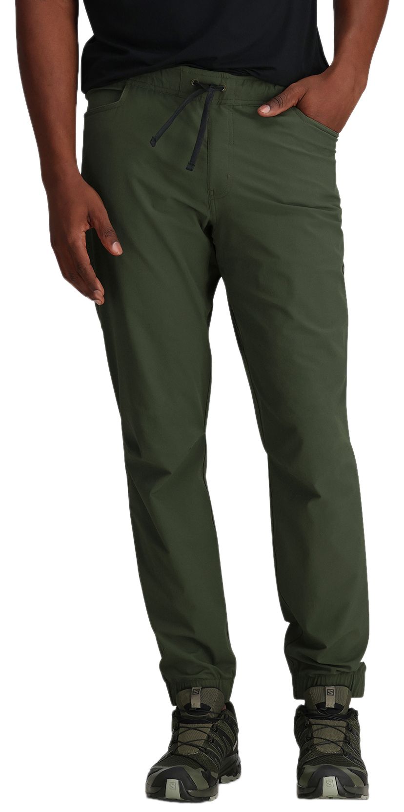 These are super comfortable. The elastic waistband is really really comfortable. I really appreciate that they come the jogger style. It's nice to have a sinched taper, especially when you're walking through mud and dirt and brush. Pockets are positioned great too in the front and not on the sides. The material is buttery soft.