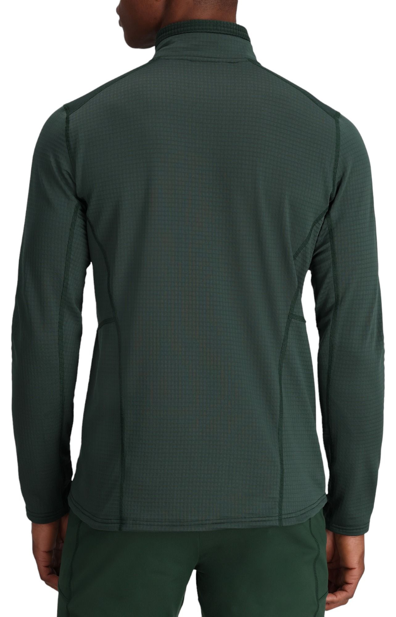 A comfortably warm grid fleece around town or climbing. The gray fabric has a welcome subtle visual texture. Thumb loops are useful but not in the way. Fit is somewhat slim yet easily fits a layer underneath