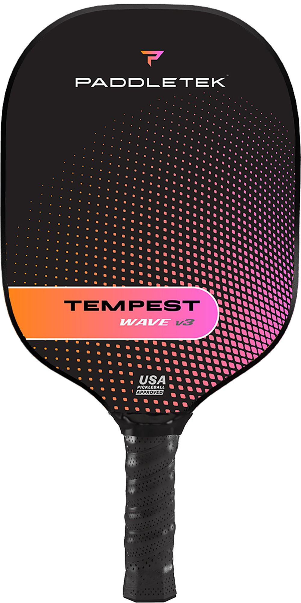 Our best-selling paddle series is now even more formidable. Introducing the new and improved Tempest Wave Pro v3 with Paddletek's exclusive ICED Carbon Fiber. Perma-Spin technology lets serious players have spin capabilities that last longer than other carbon fiber surfaces. The legendary Smart Response Technology and a large, consisstent sweet spot add finesse to every shot, while the balanced weight increases speed and maneuverability for even better play.